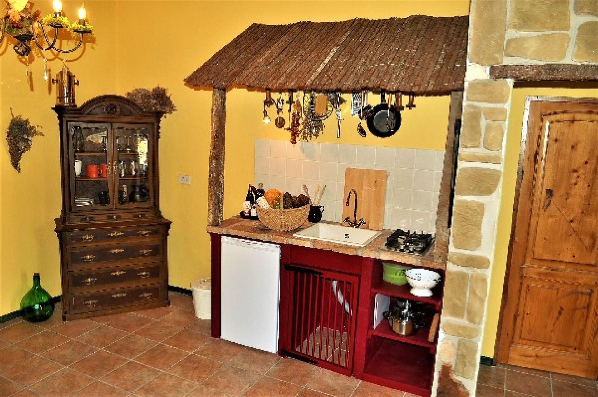 Beautiful Country House with large annex located not far from the city of Pergola and in a context of total peace and tranquility. The farmhouse of 320 square meters. it has been completely restored and is immediately habitable and ready for a tourist activity. The main structure consists of a ground floor where we find the guest area divided into two apartments each with a kitchenliving room bedroom and bathroom an apartment with kitchenliving roombedroom and bathroom and a separate bedroom with bathroom . All apartments have private terraces or outdoor seating plus various storage rooms and toilets. On the first floor the private apartment consists of a large open space kitchen with dining area tiled stove and access to the terrace living room with fireplace a bedroom study small closet and bathroom. The annex is about 100 square consists of a tavern for dinners and various activities aviary and warehouses. Magnificent terraced garden that borders with the river of . with lawn fruit trees and olive trees rose gardens and other ornamental plants small swimming pool. Access from a dirt road that ends at the house.