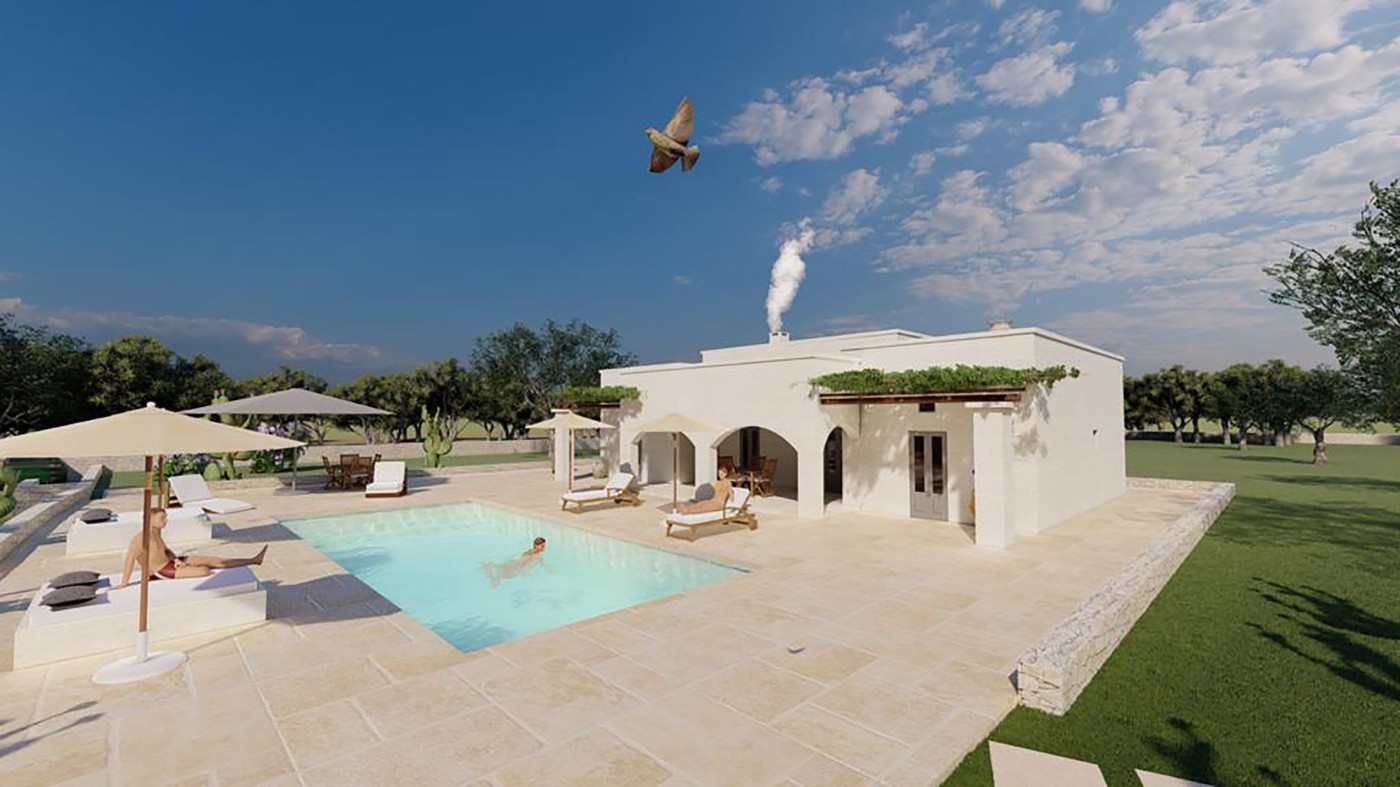 Villa for sale in the countryside of Ostuni, in a dominant position, a villa under construction with swimming pool.