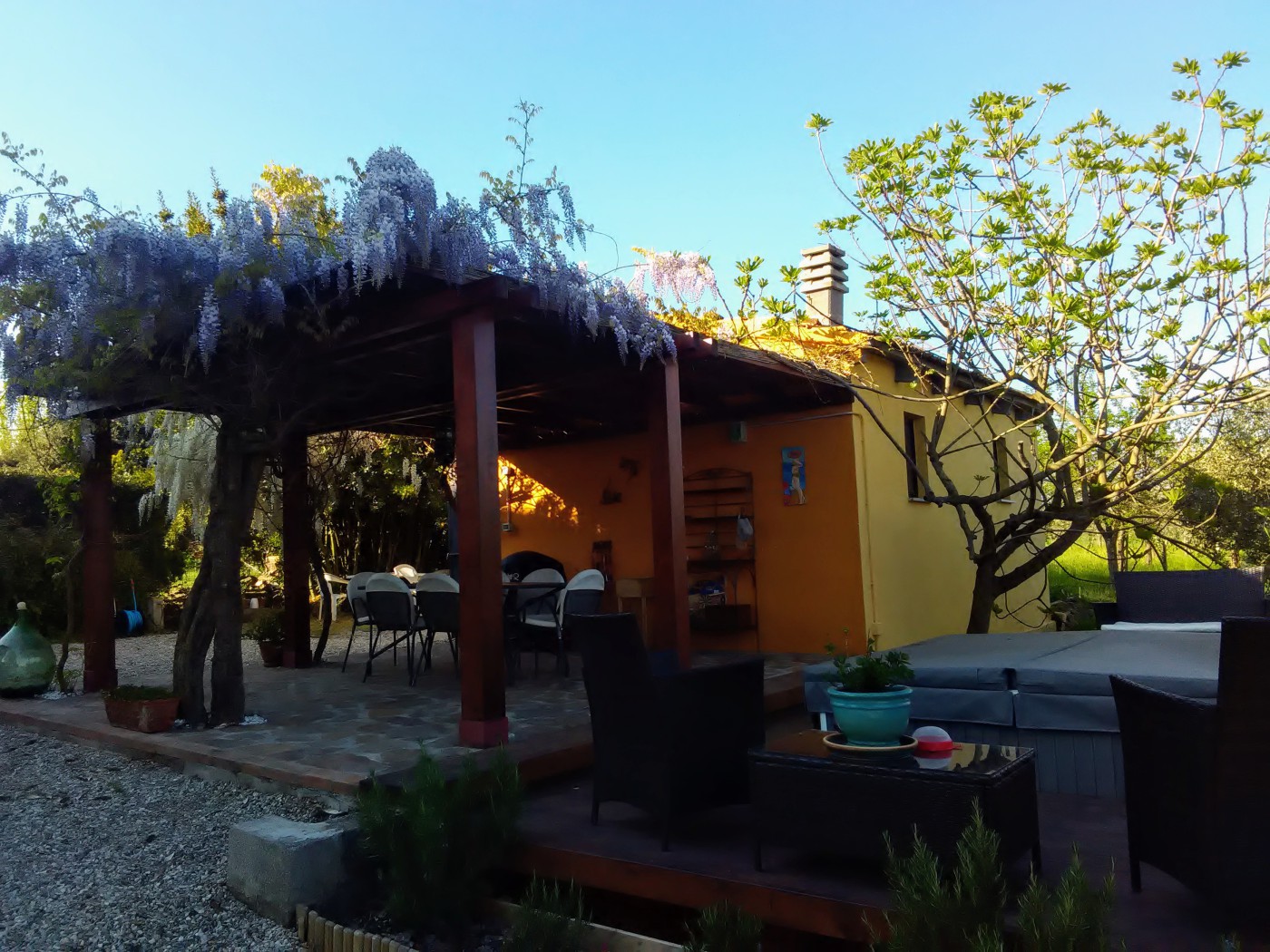 Outdoor jacuzzi and pergola. 12