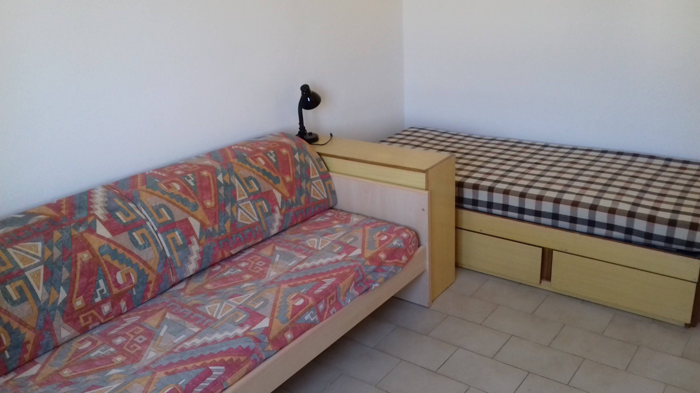 The apartment is composed of two bedrooms and a large living room with a fully equipped kitchen.