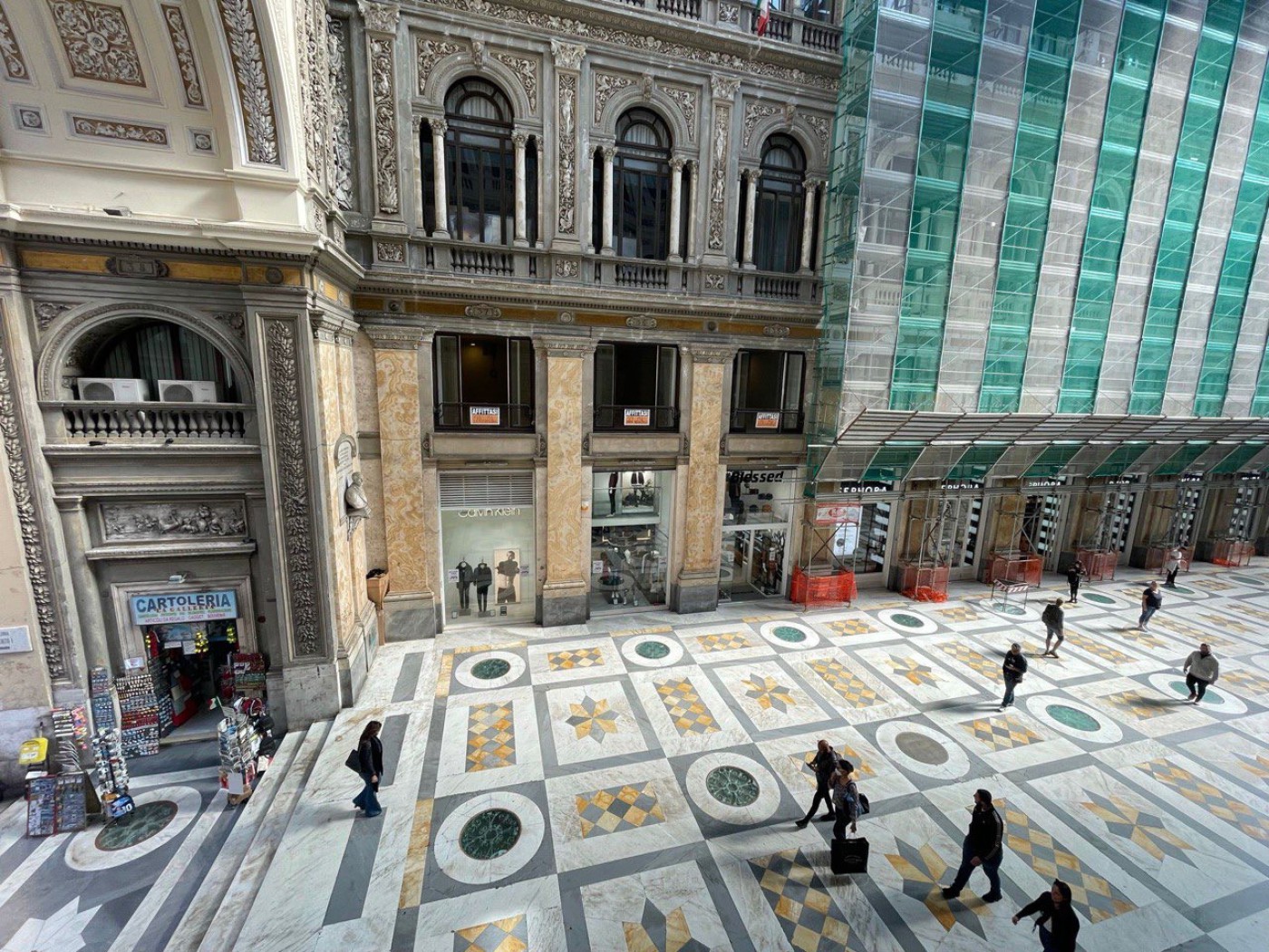 The historic building, very elegant, is in an excellent state of conservation (the renovation of the façade was completed a couple of years ago) and its views are within the Gallery (visible above the tobacconist the balcony with the historic friezes of the property) and on Via Santa Brigida.