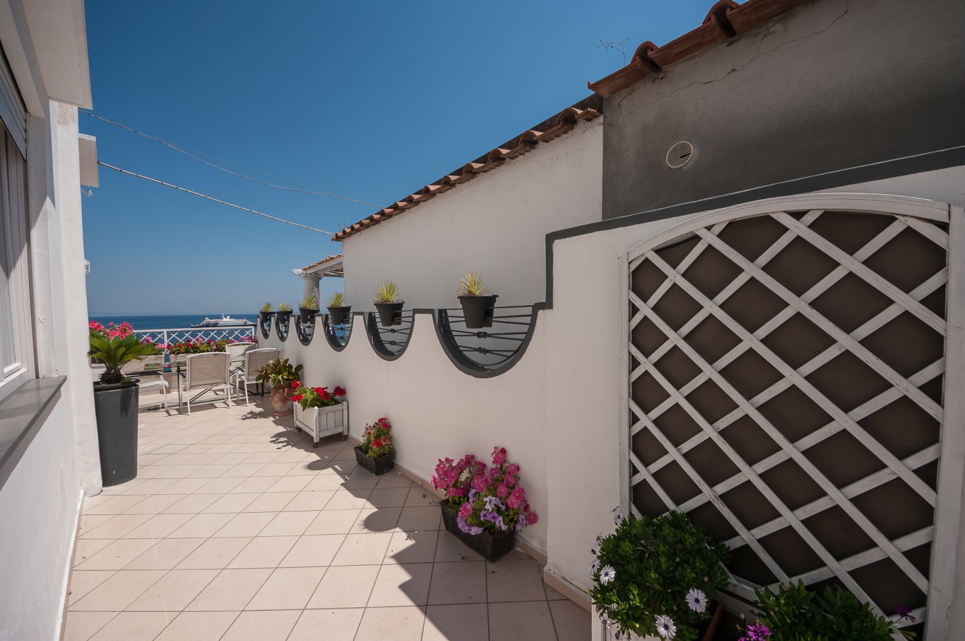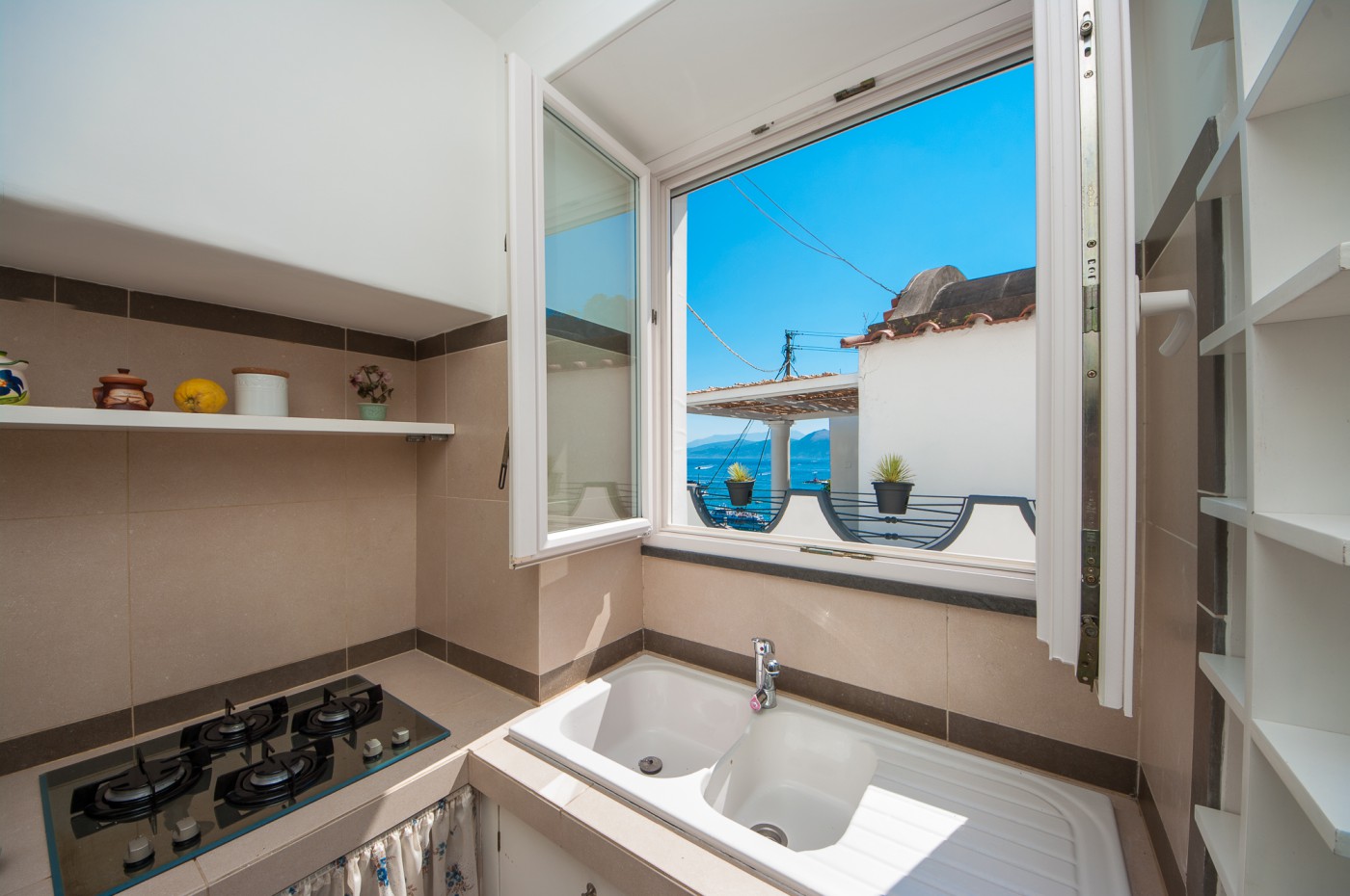 kitchen with sea view and a panoramic terrace. The recently renovated apartment is equipped with a