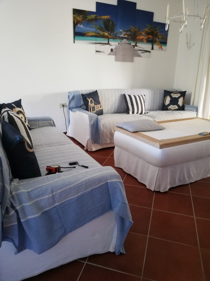 Villa for 6 people, 2 floors, double living-room with fireplace, 3 bedrooms, 2 baths with windows, big kitchen, big garden with sofa and chairs, private garage. 2 minutes walking to the beach. Air conditioning and Wi-Fi. Close to market, diving club, shops, etc.