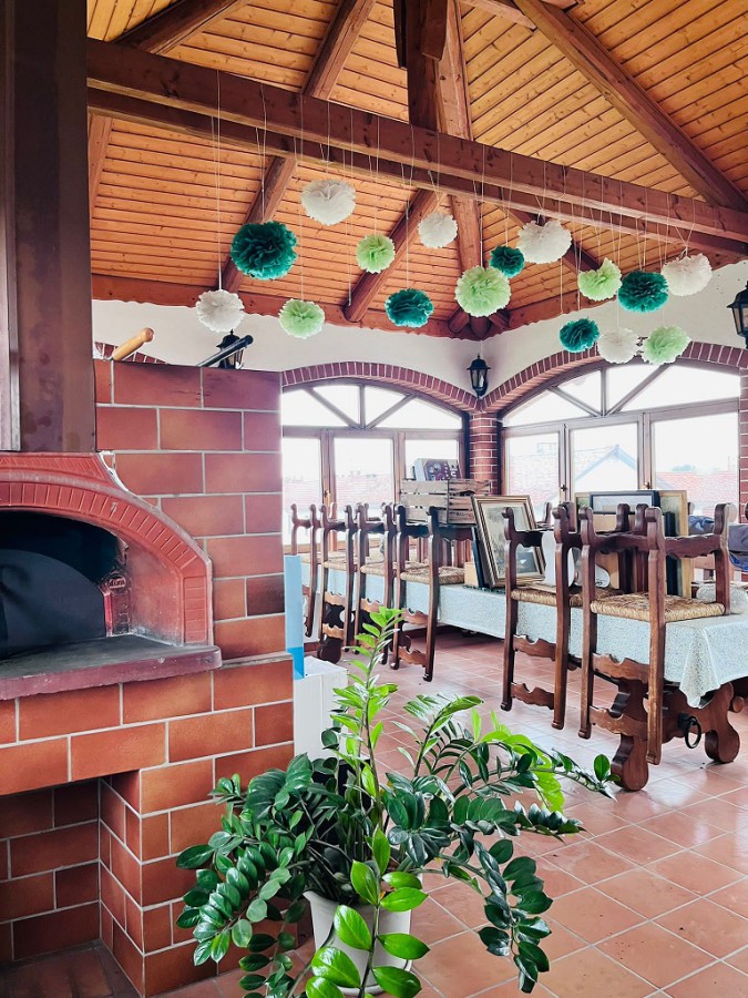 panoramic room with a large, fully functional wood-burning oven, three large bedrooms, bathroom and