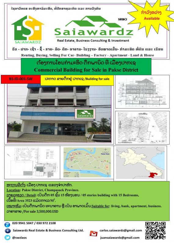 Building for sale in Pakse Town in Champasak Province. Chamapasak is a southeastern province bordering with Thailand and Cambodia. Is a great opportunity for invest in this privileged area.