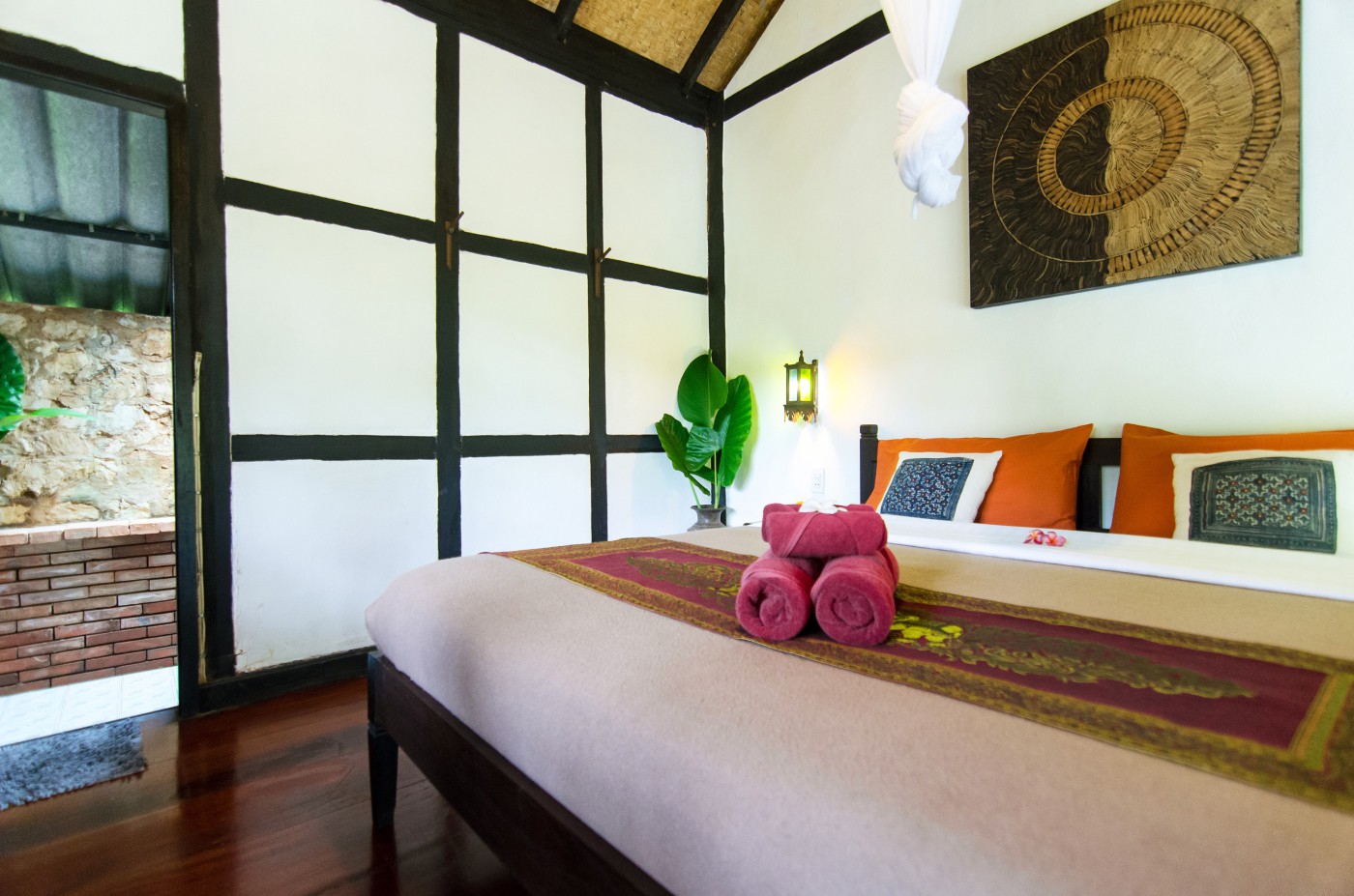 The eco-friendly Hillside Lodge is idyllically nestled in Laotian mountains. It`s a nature retreat only 12 km from Luang Prabang, surrounded by protected area with primary forest. The ride takes around 25 min from the city center of Luang Prabang, 7km on dirt roads. Recently road construction started and after completion of a paved road (approx. by 2025) the expected driving time will reduce to 15min.
