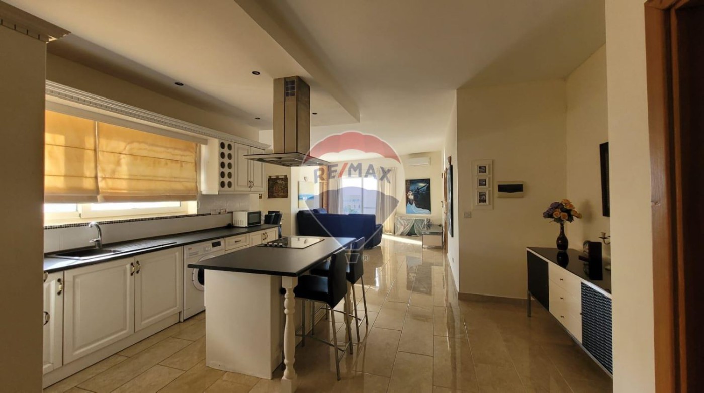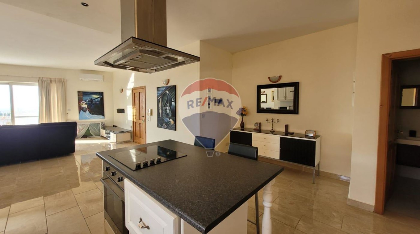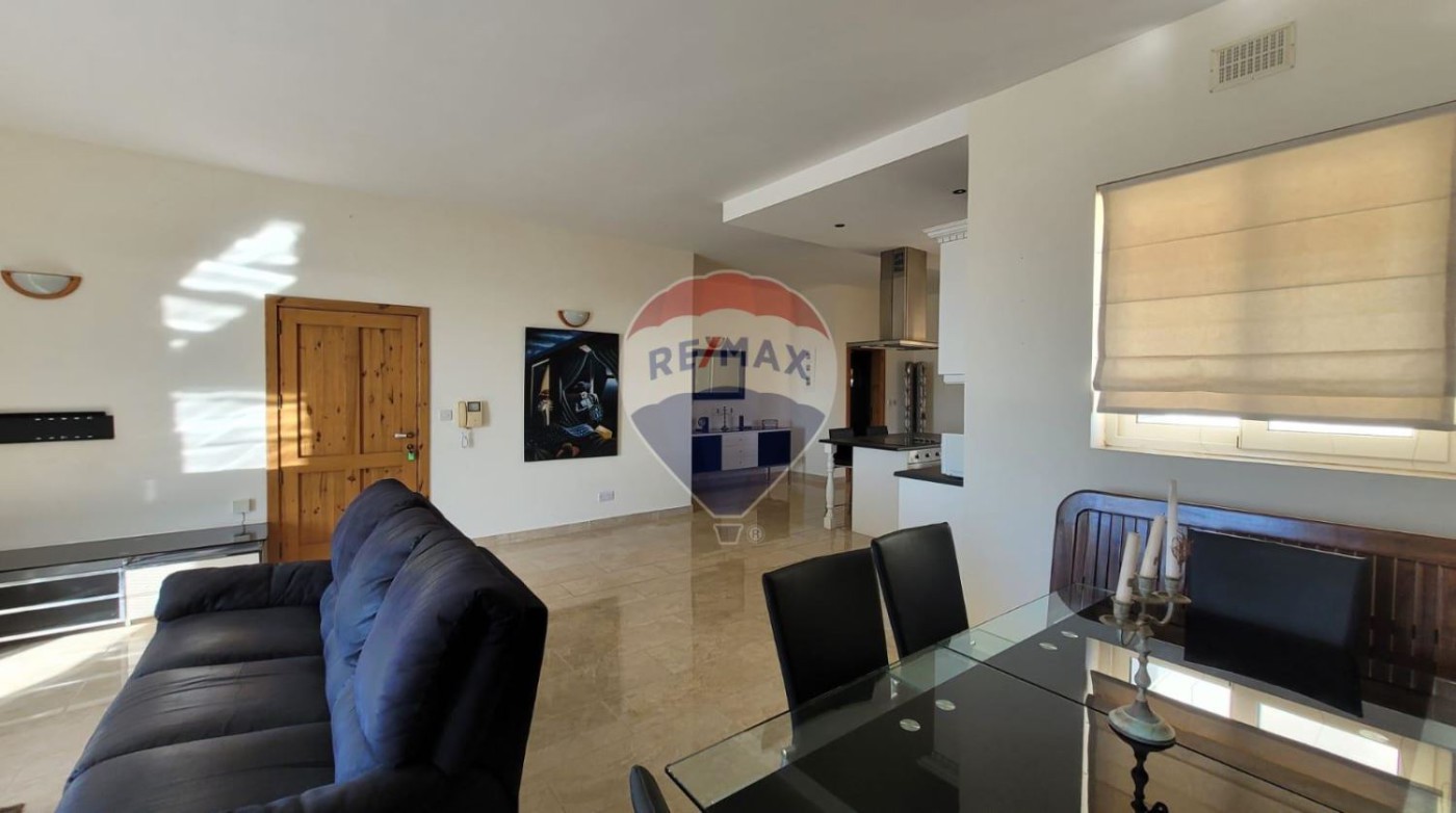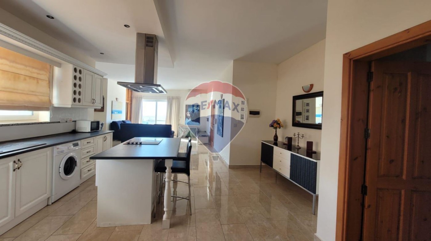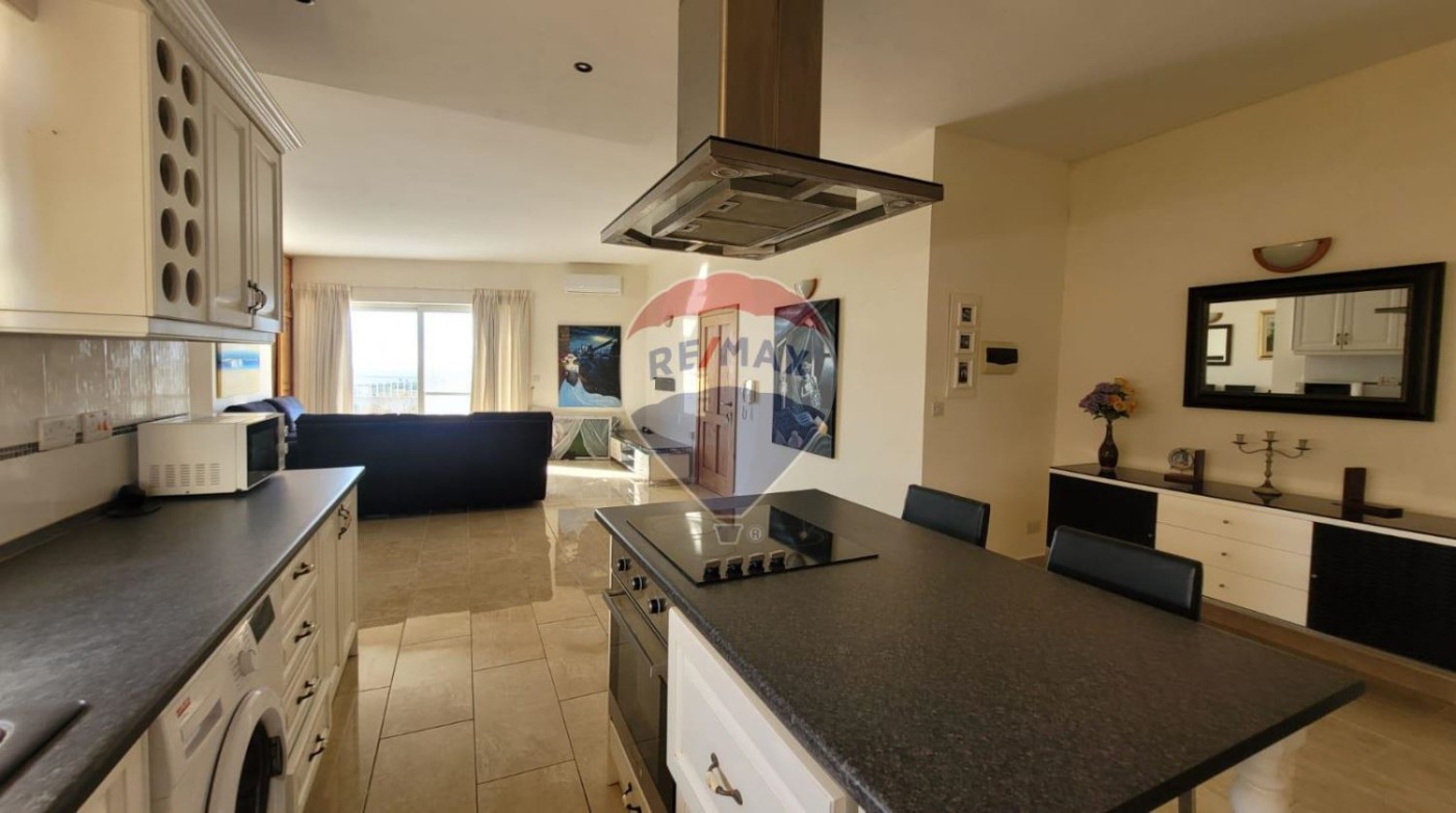 Ghajnsielem - 2 double bedroom, 1 single bedroom/study PENTHOUSE with its own airspace with full building permits to build an additional 3 bedroom unit. The existing penthouse has breathtaking views, from the airspace one can enjoy spectacular views of the Gozo Channel and the Maltese Islands. The property comes fully furnished and ready to move in. Property enjoys a large and comfortable open living space with a large kitchen/living/dining that is connected to a large front south-facing terrace. Two good size bedrooms one with an ensuite and both connect to a larger than usual back balcony and have access with a spiral staircase to the airspace. The property is fully air-conditioned and includes solar heating. Being sold fully furnished and ready to move into. Do not miss out. Larger than usual property with good