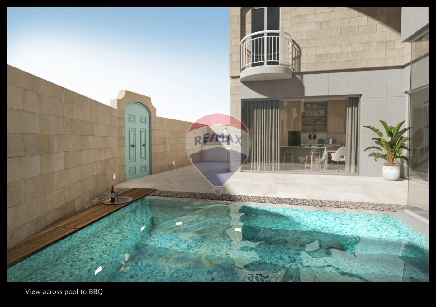 Already built in shell form is this Modern 5 Bedroom Terrace House located in the sought out area in Qala which has been designed with lots of thought to cater for a lovely family home. The house is wrapped around the pool and front garden area and the layout enhances the natural beauty of the original architecture, making it a very special house that accommodates all the needs that a family needs. Upon entrance one is welcomed with a front garden with a swimming pool which is set up to have a waterfall wall feature onto an overflowing pool which is adjacent to a generous deck area. Entering the main house thru a very wide modern door, one finds a large family room overlooking the pool area and a large