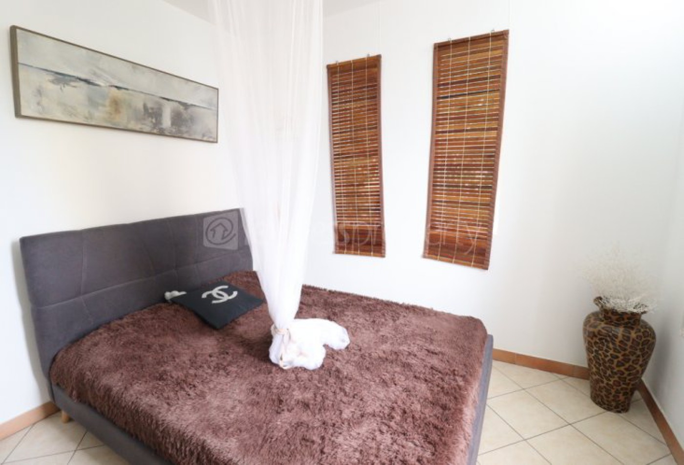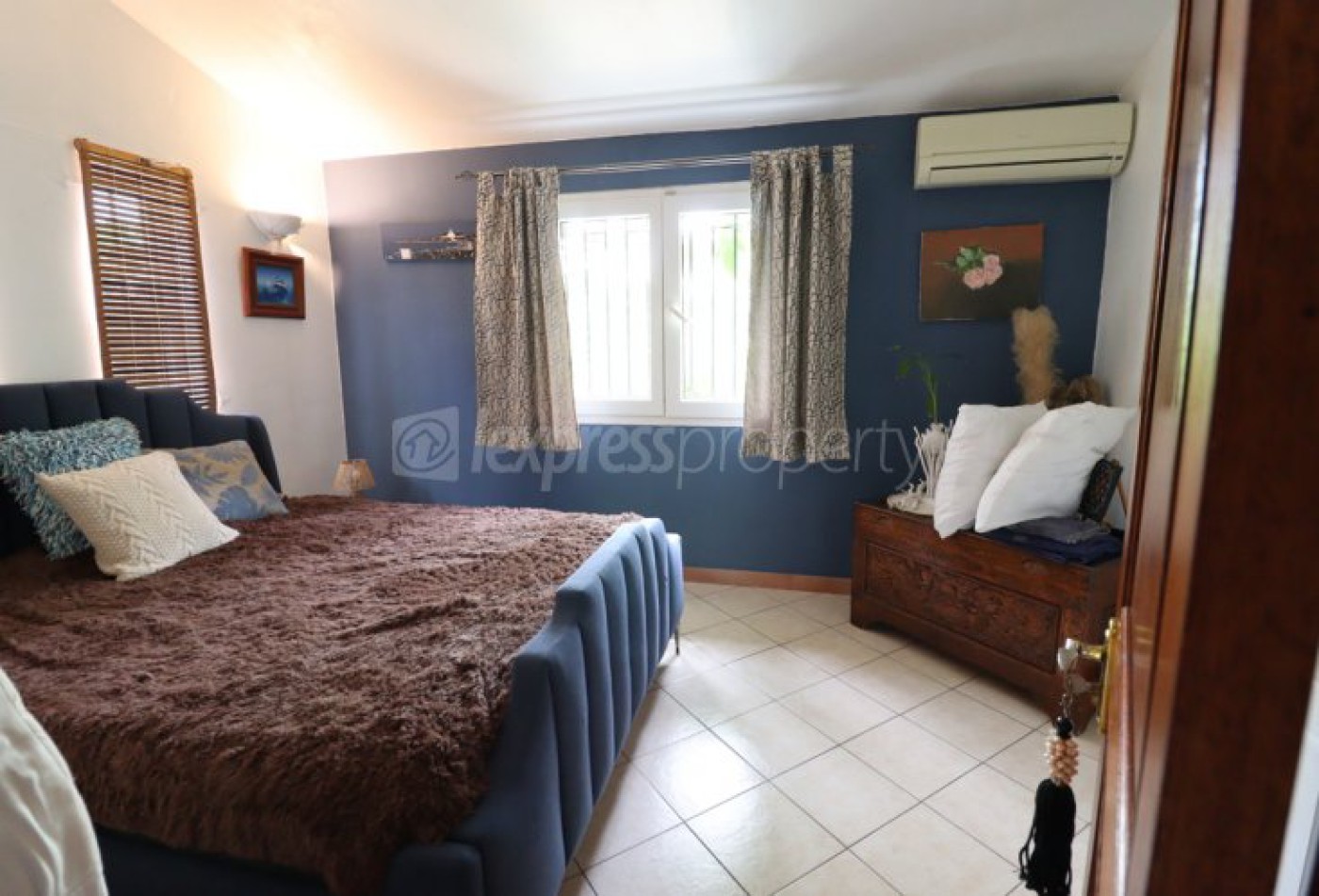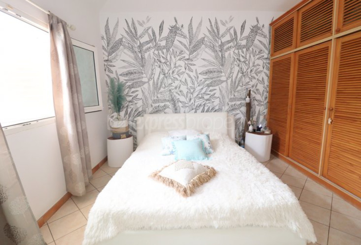 Beautiful family home sold unfurnished in a pleasant residential neighborhood not far from the public beach. From the entrance, your eyes are drawn to the pool area surrounded by lush greenery that creates a true bubble of privacy while bringing freshness and serenity. A few steps up, a lovely veranda invites you to relax. The house opens onto a bright living space extended by a friendly open-plan kitchen. The ground floor also includes a practical bedroom with a lovely view of the pool and garden and a shared bathroom. An automatic gate leads to a driveway to the garage, which connects directly to the laundry room and kitchen. At the back, a landscaped garden with a few fruit trees completes this level. Upstairs, the sleeping area consists of a bedroom with a private balcony, a shared bathroom, a second bedroom with a built-in wardrobe, and a versatile third room currently used as an office. Carefully maintained, this home offers an ideal living environment for a family wishing to settle in a pleasant neighborhood close to the sea.