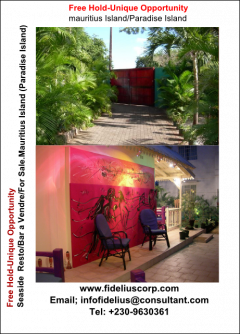 The property is a Freehold Seafront Villa which is fully equipped as a resto bar. What makes it unique is most seafront property are leasehold except this one. The property has a commercial value of Commercial Value Rs22millions(733,333 USD/550,000 EUR). Offer sale price is at Rs15millions(500,000 USD/375,000 EUR).