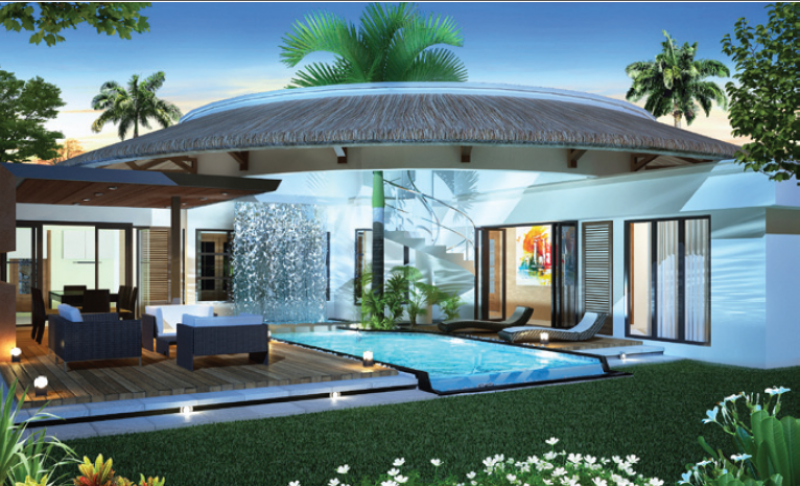 Great Opportunity: For sale, villas in the north of Mauritius with 4 bedrooms (2 bedrooms en suite) and stunning sea view , fully equipped kitchen & bathroom, swimming pool & cascade, panoramic view from roof & terrace in a lovely property with own access & resident permit, 24hrs/24hrs Security services and 300 metres from the beach.