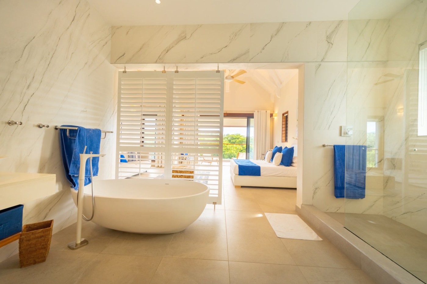 Downstairs offers your living space which opens onto the balcony with views of the river and the pool,