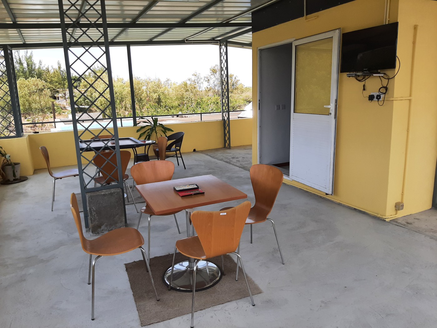 A big, covered terrace on rooftop.