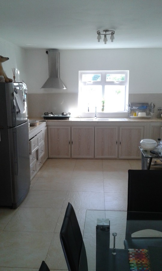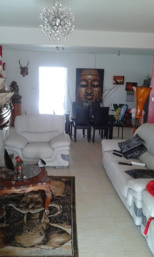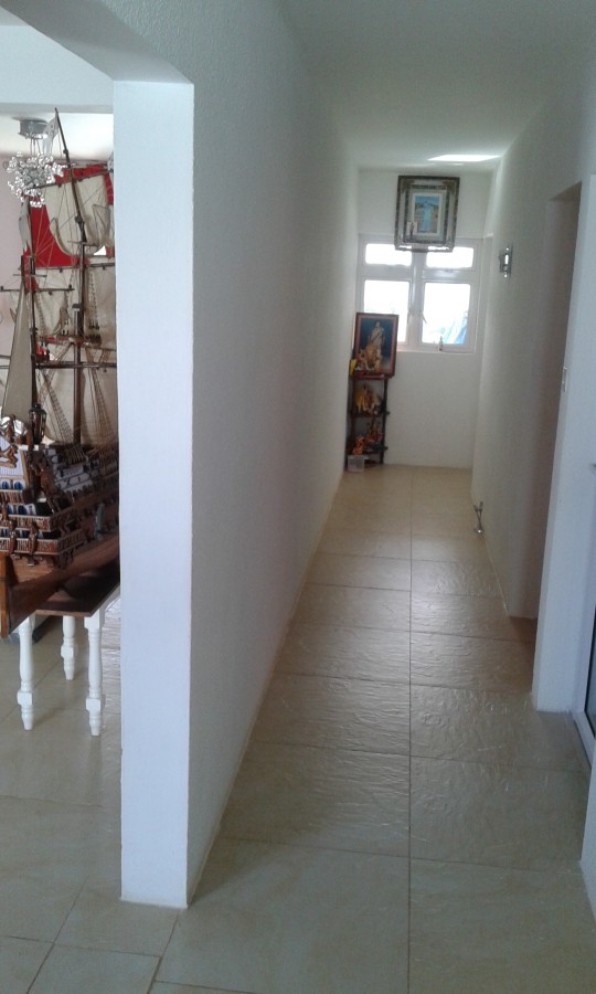Flat house land 649 m2 house 2100 square feet 3 bedrooms with usage to one open bathroom toilet and sink , passage interleading to 1 open lounge , dining room and kitchen. 1 master bedroom with own bathroom toilet and sink. 1 front and back terrace . 1 guest bathroom and laundry room. outside table tennis , garden and open parking space for 5 vehicles.