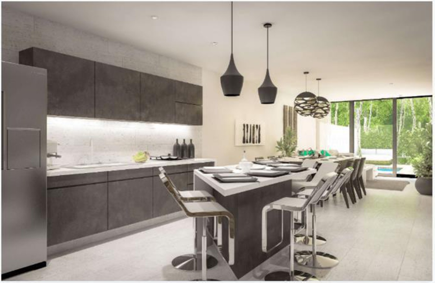 pool, garden, living room, kitchen