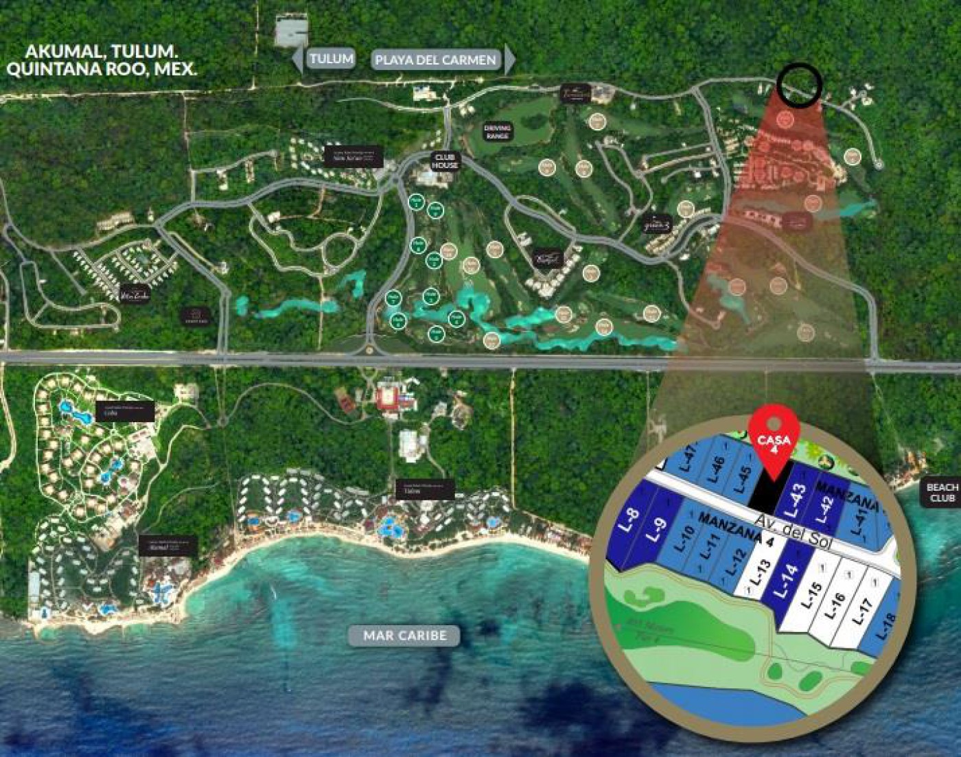 The urbanized complex is surrounded by the Mayan Riviera Golf Club, considered one of the best