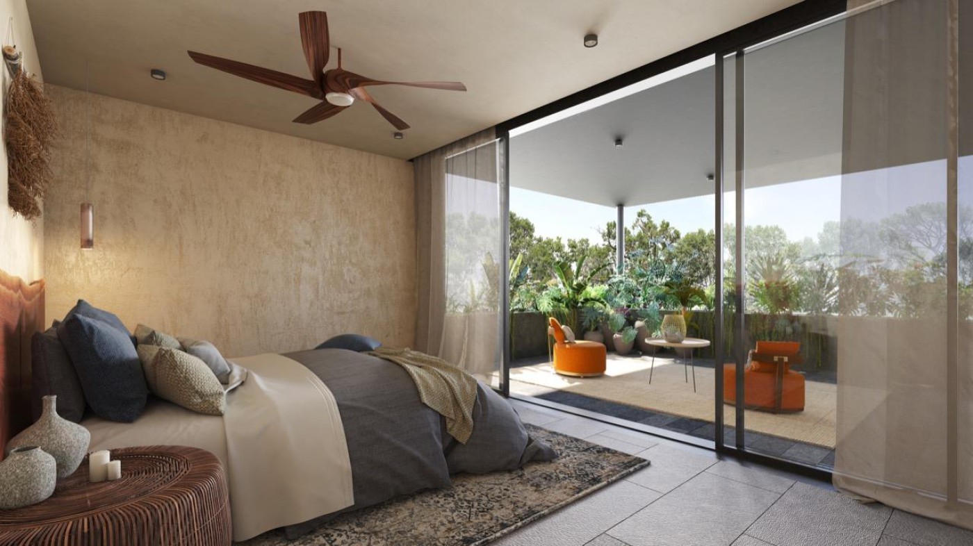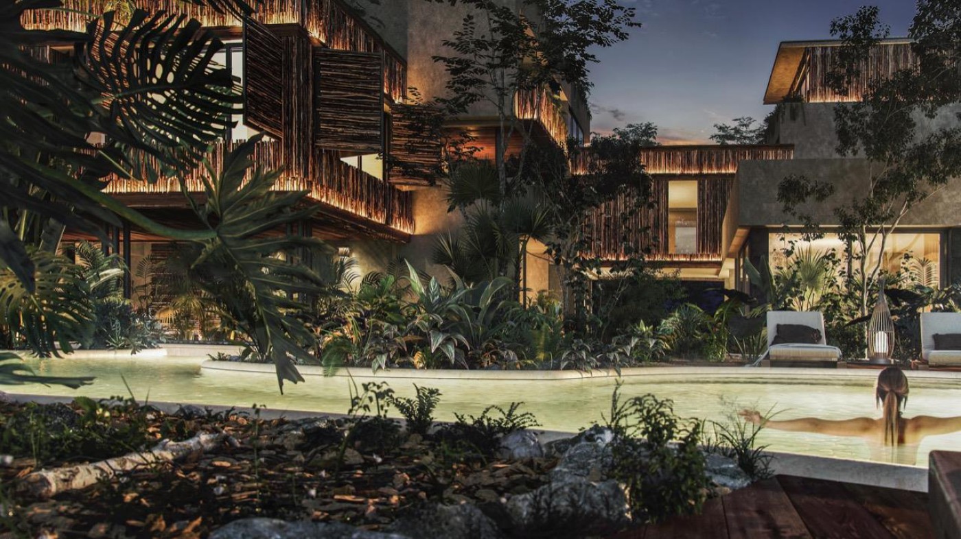 2BR 2BA apartment Humana Tulum Humana is a project that takes up the essence of the village, seeking a seeding of random volumes with the intention of generating tours, inviting you to discover the modern architecture of the jungle. The complex is divided into two sectors: Residences and Hotel. each with its own amenities with shared spaces. Amenities: Urban square Motor lobby concierge 2 swiming pools lounge terrace grill area