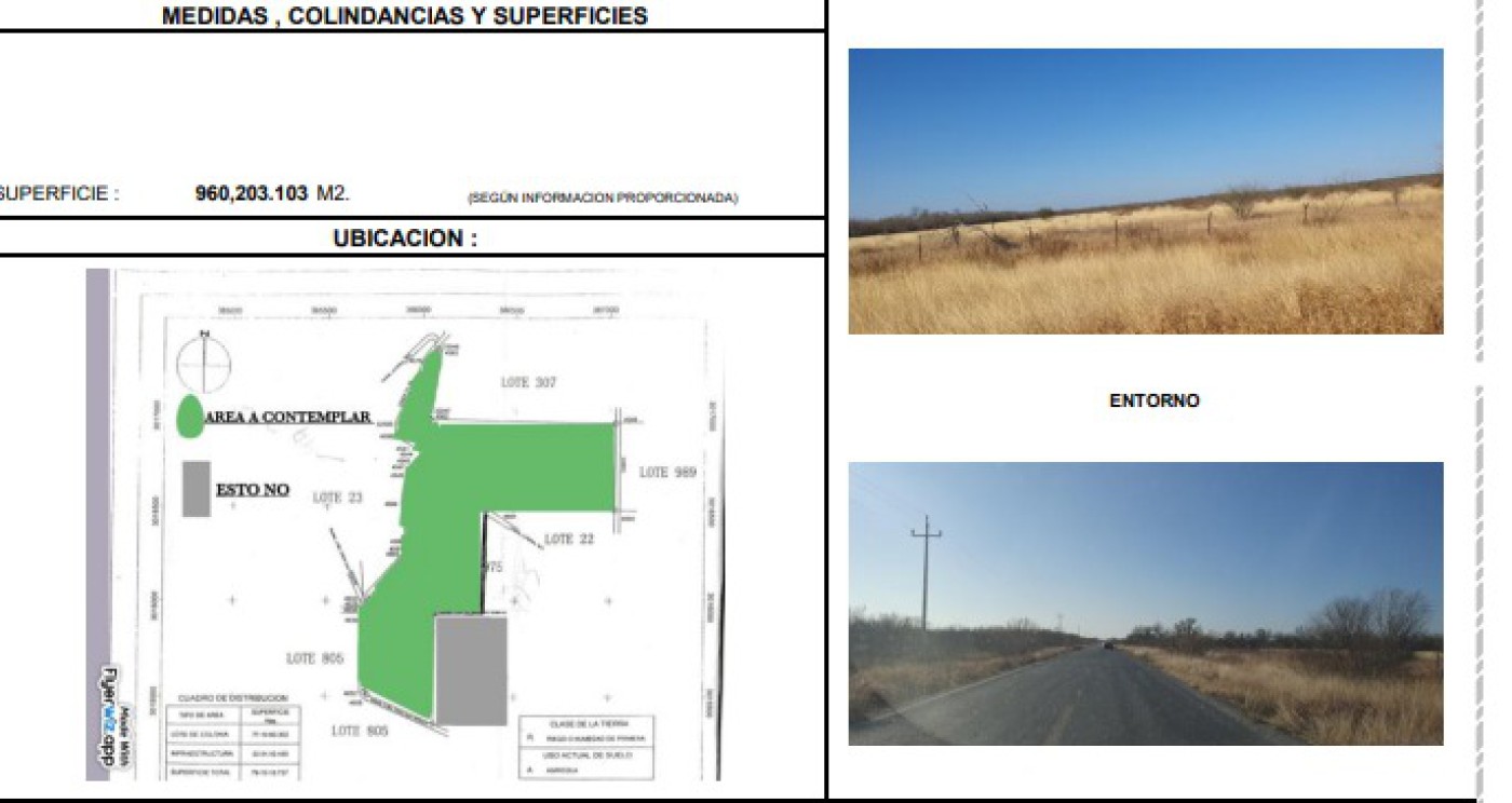 Land for SALE located in Anáhuac Nuevo Leon Mexico , nearly border with Colombia Bridge Laredo Texas custom, perfect land to develop business, industrial, technology parks, or wheat, sorghum, grains, forage, corn, bean, and alfalfa agriculture, best investmet in town, nearly Ciudad Anahuac downtown. It has been improved with industrial facility roads, and goverment benefits for permissions to build developments. Its a perfect inversion with a great vision for the next 50 years. Water wells and electrical network, internet and biodigesters. 96 hectareas, (237.22 acres.) available. BIG SALE 1,378,000 USD. Ready to sell, land in legal situation.