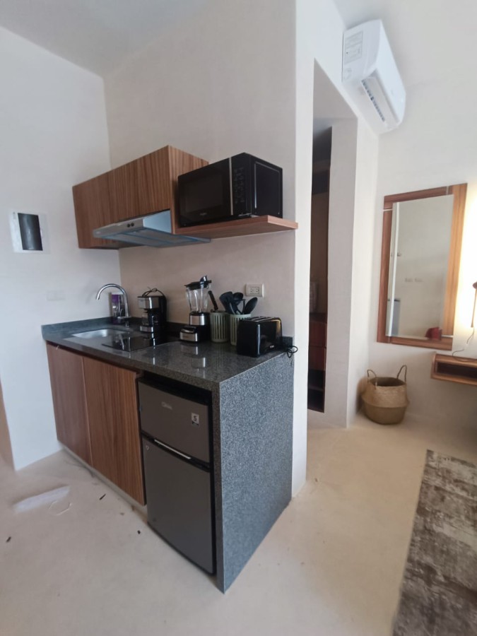 PRICE REDUCED. MOTIVATED SELLER. NEW EXCLUSIVE STUDIO 5 TO 15 MIN FROM SHOPPING, BEACH, MAYAN RUINS, MAYA TRAIN AND CENOTES. NEW INTERNATIONAL AIRPORT IS ONE TREN MAYA STATION AWAY. OTHER ATTRACTIONS SUCH AS XCARET, XEL HA AND GOLF COURSES NO MORE THAN 30 MIN DRIVE FROM YOUR HOME. AMENITIES INCLUDE POOL, GYM, STEAM BATH, LAUNDRY, ELEVATOR, PRIVATE LOCKER, 24X7 SECURITY AND MORE. THE STUDIO HAS A/C AND VENTILATOR, A KITCHENETTE AND A TERRACE TO ENJOY THE VIEW OR A GOOD COFFEE OR DRINK. OPTIMAL FOR 2 ADULTS, BUT UP TO 2 CHILDREN ON A FOLDED SLEEPER CAN BE ACCOMODATED TOO. FULLY FURNISHED AND DECORATED. HIGH SPEED WI FI (MONTHLY COST IS ONLY $463 PESOS). JUST OPEN THE DOOR OF YOUR NEW CONDO AND ENJOY !! YOU MAY USE IT PART TIME AND SUB-RENT SHORT TERM VIA AIRBNB, VRBO, ETC. LOCATED IN AREA OF HIGH VALUE INCREASE DUE TO COMMERCIAL, RESIDENTIAL AND CONNECTIVITY VIA TREN MAYA STATION LOCATED 5 MIN AWAY. BUILDING MAINTENANCE IS UNDER $1,750 MX MONTHLY. BILINGUAL LEGAL AND NOTARY SERVICES ARE AVAILABLE TO CLOSE INVESTMENT IN FULL CONFIDENCE.