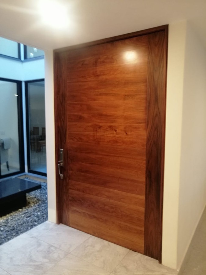 - Master bedroom with wooden flooring, terrace, walk-in closet, air conditioning, full bathroom, and double sink