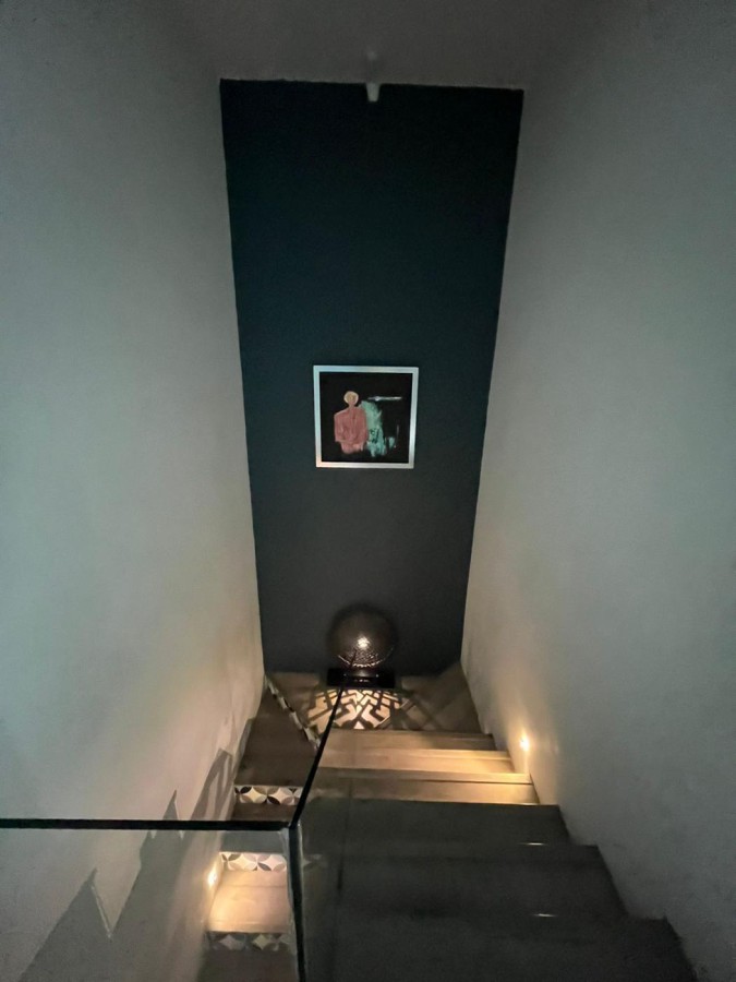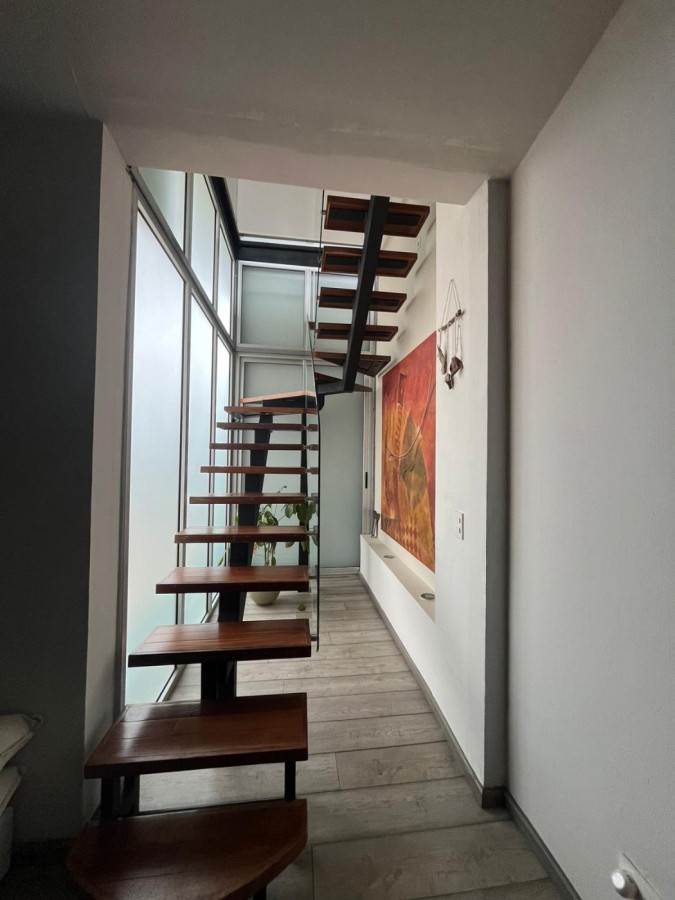 2 living rooms, dining room, kitchen, pantry, half bathroom, washing machine area, interior garden