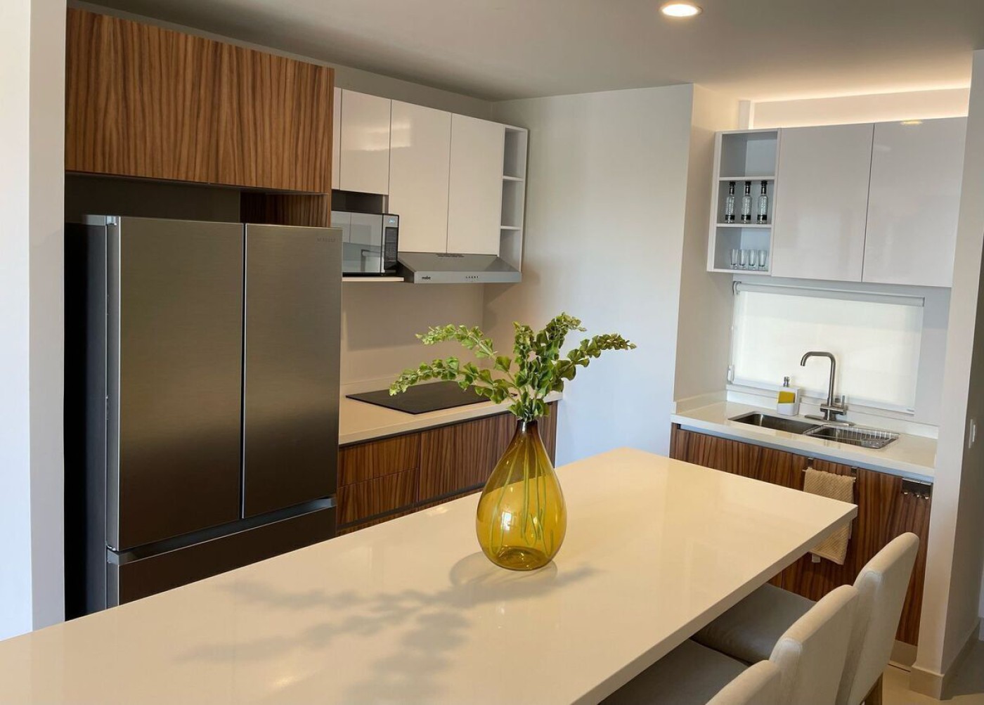 para aprovechar al máximo el espacio, integrándose de manera armónica con la sala-comedor, creando un ambiente