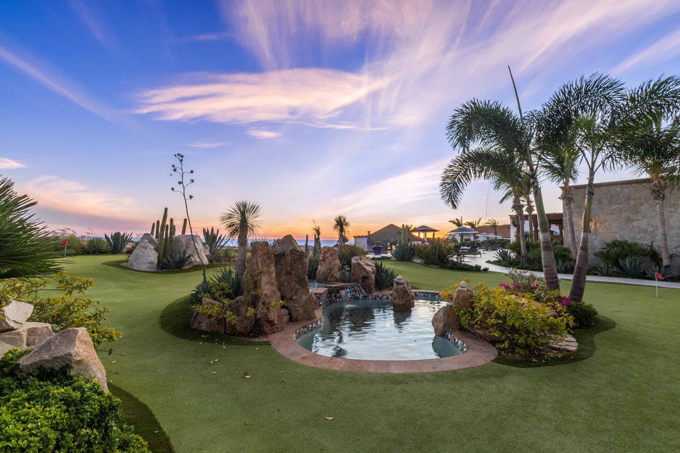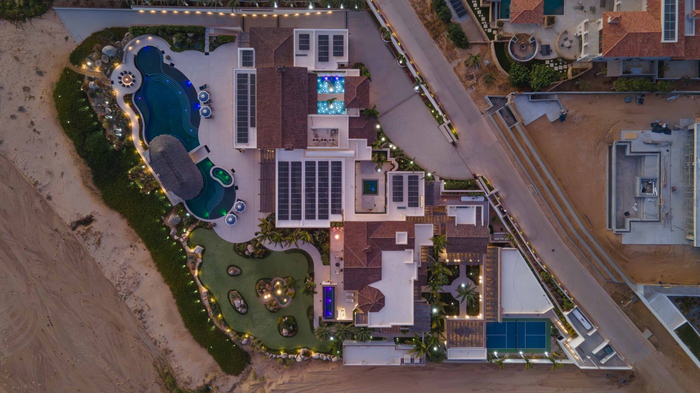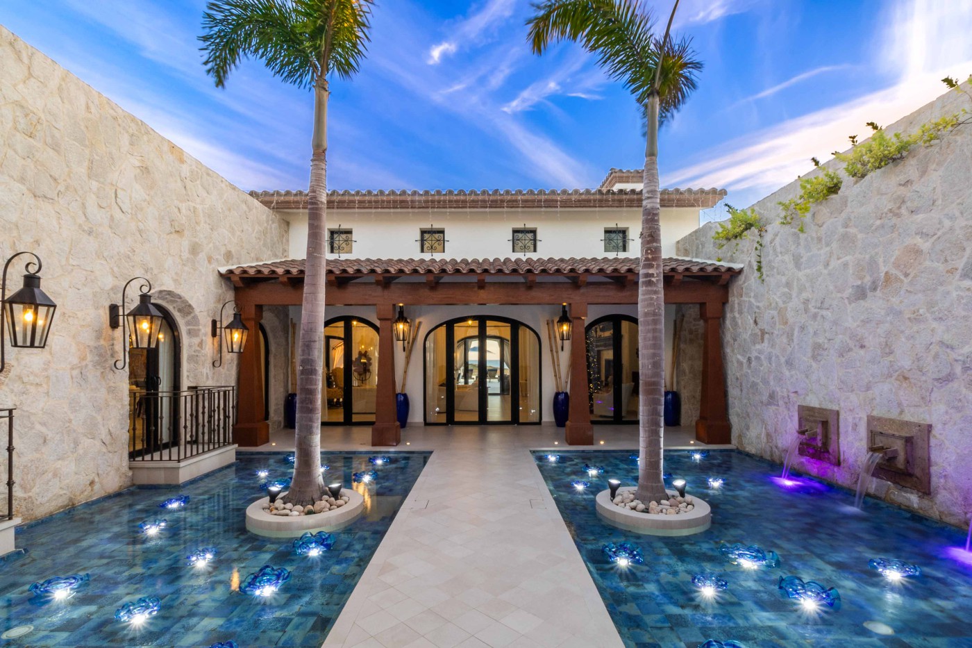 double-gated Diamante community in Cabo San Lucas. Set across two expansive lots, the villa offers