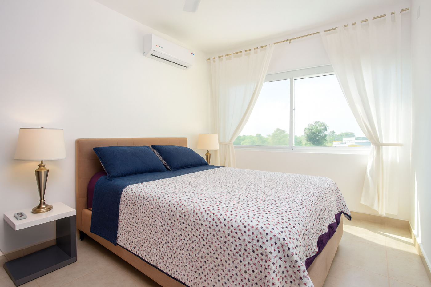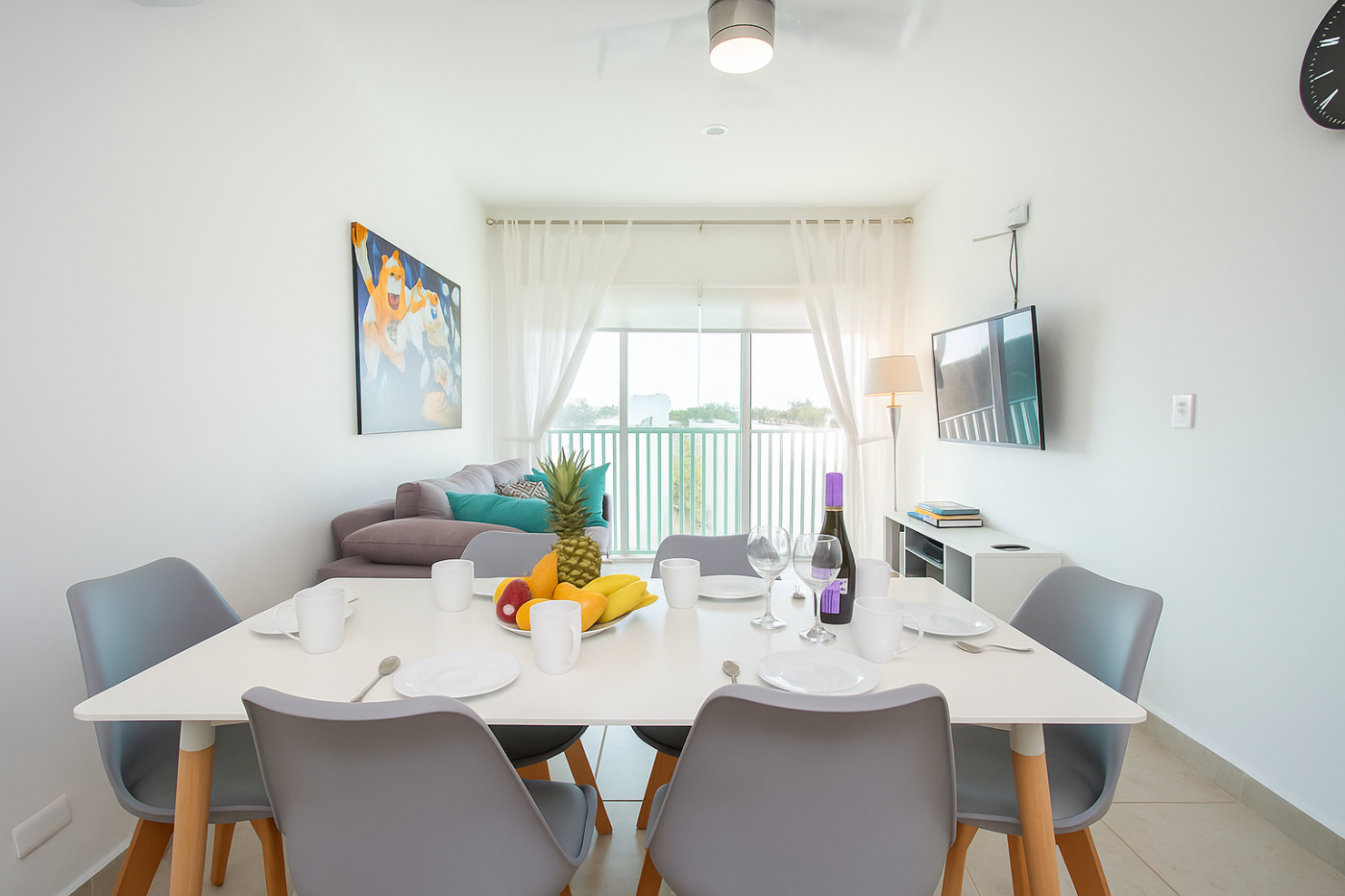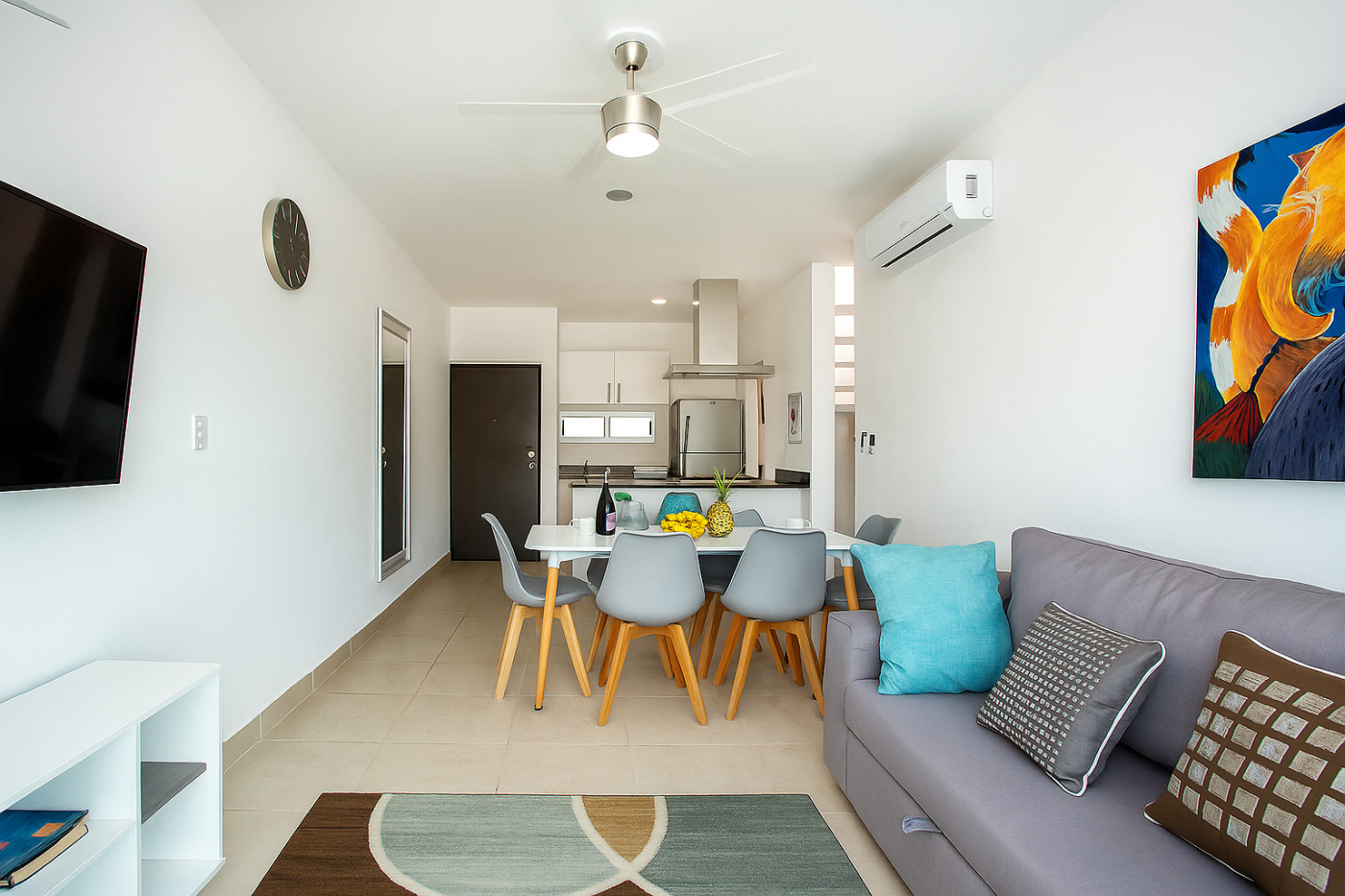 Turn-key 2-bedroom, 2-bath condo in the gated Lunamar community, just steps from Playa Esmeralda in Playa del Carmen. Fully furnished and move-in ready, this modern unit features air conditioning in every room, a balcony overlooking lush gardens, high-speed Internet, and a Smart TV.