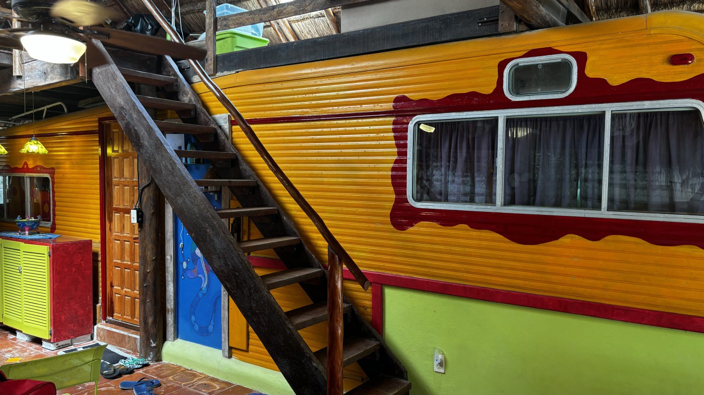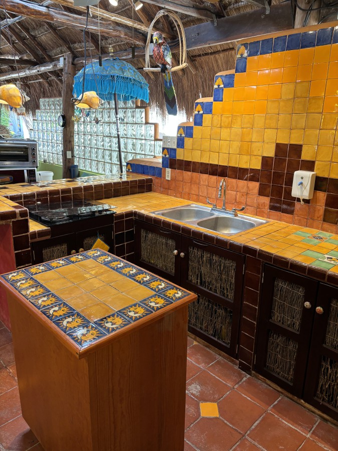 Charming 1-bedroom beachside retreat in Solidaridad. This custom 5th Wheel home is permanently set on a concrete pad and sheltered beneath a stunning Mayan palapa roof, offering natural cooling and a dry environment year-round. The interior features ceramic tile floors, sheetrock walls, glass block accents and custom cabinetry for a bright, modern feel.