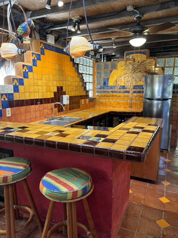 The outdoor living area is fully tiled with crack-resistant Saltillo tile and enclosed by decorative concrete and glass block privacy walls. A gated entrance leads to a private patio, kitchen and bath/shower area. In under a minute you can stroll from your doorstep to the sandy shoreline.