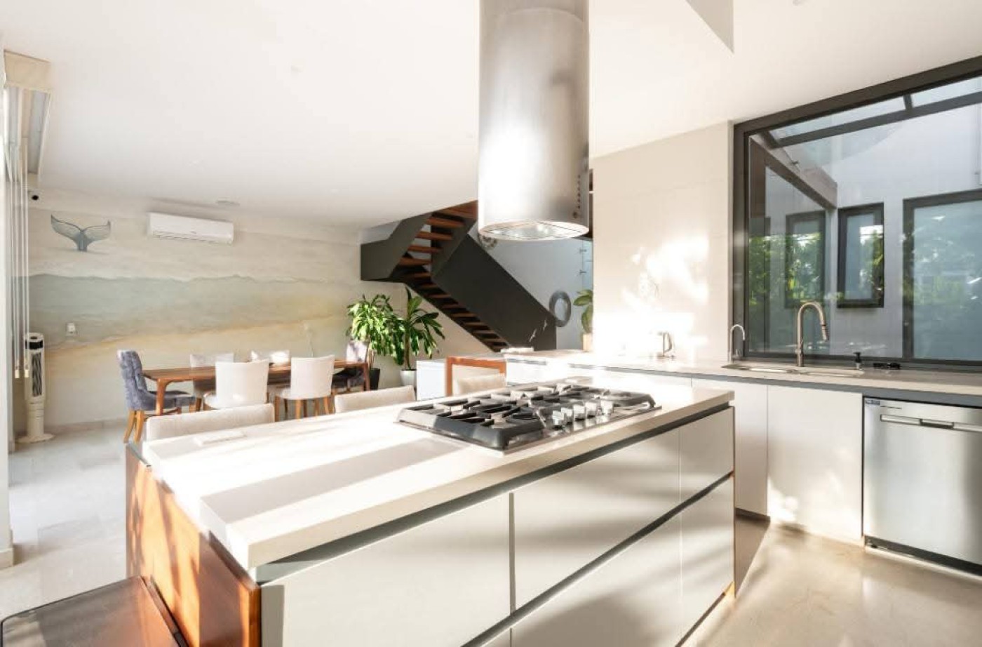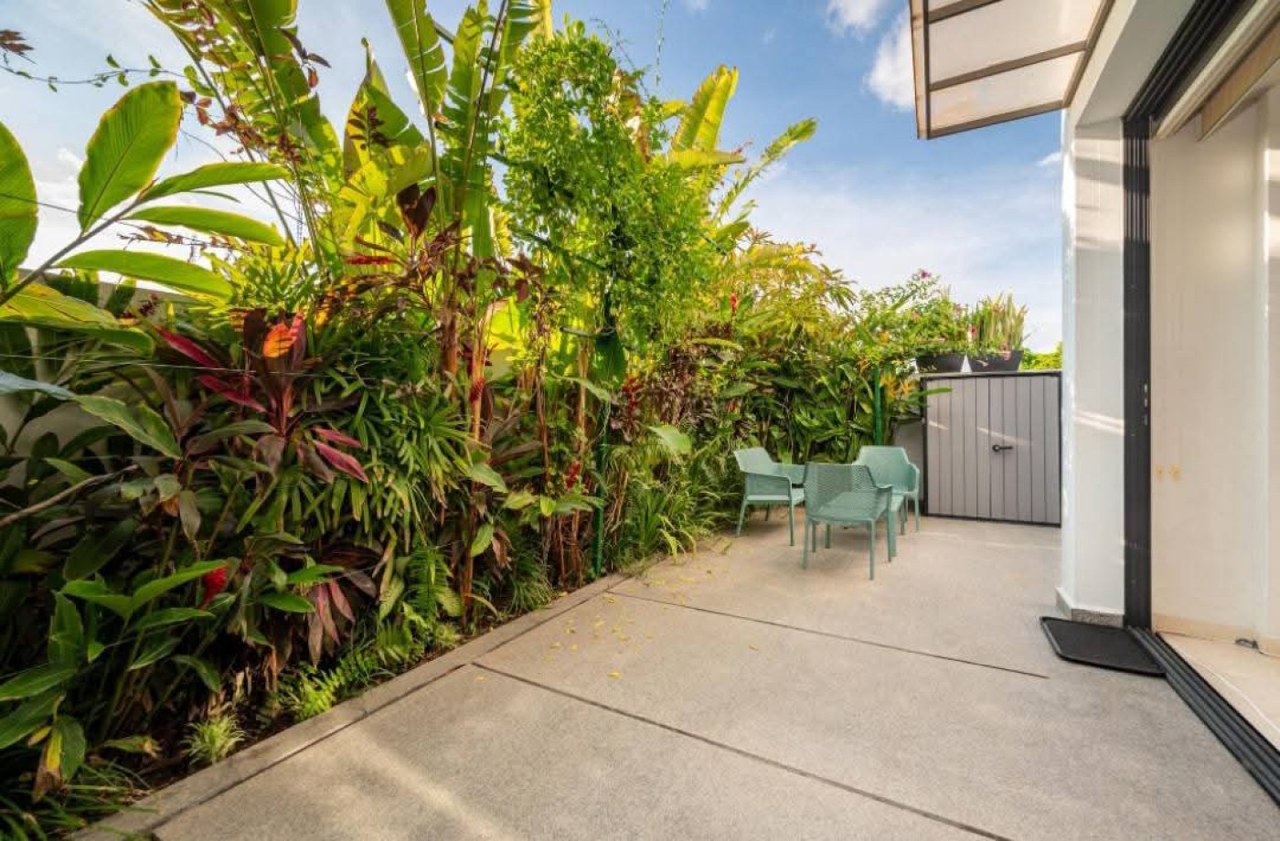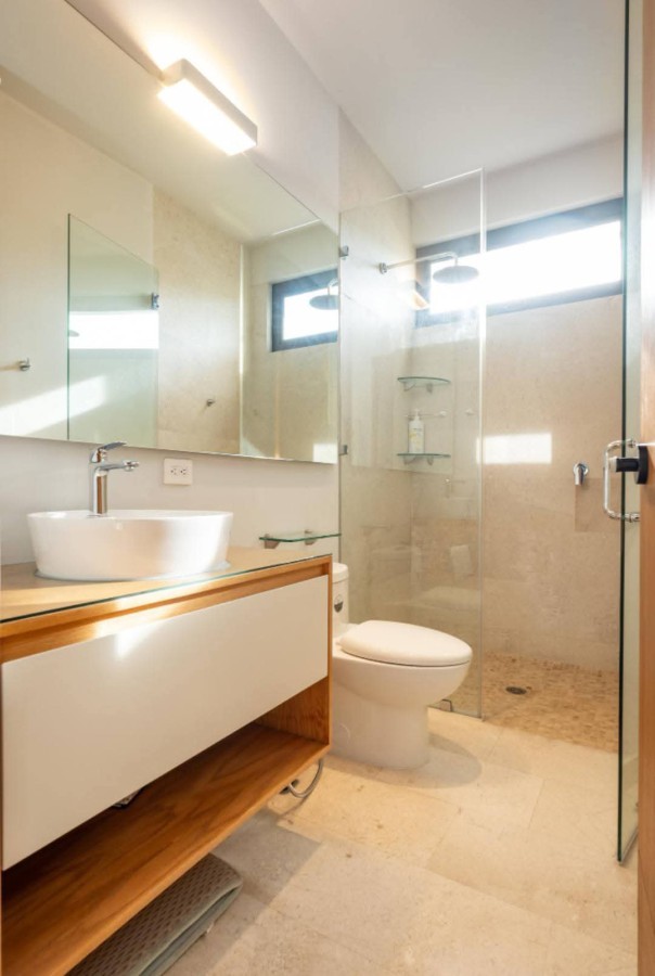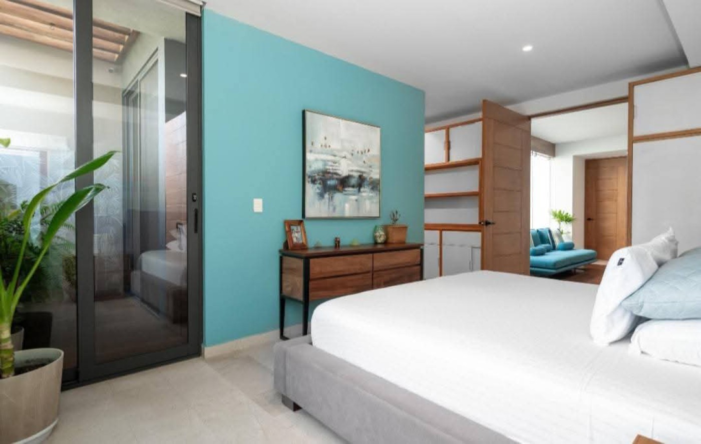 Beautiful house for sale in La Cruz de Huanacaxtle with four bedrooms each featuring a private full bathroom. The fourth bedroom has a separate entrance, ideal for guests or staff. Enjoy a dedicated home office with sofa and rooftop workspace plus a den for relaxation and childs play. The rooftop pool includes jet and light therapy. Outdoor seating offers a fan, dining table and retractable shades, while two sunbeds and a giant umbrella provide extra lounging space. An additional shower and toilet add convenience. This quiet three-story home sits at the highest point in the complex, offering 360-degree views of the ocean, jungle and sunset. It overlooks a green palm park, providing privacy and a safe play area for children. The secure and peaceful environment includes amenities such as free kayaks, tennis and basketball courts, two pools with designated baby pools and splash pads, and an on-site restaurant. Price: $800,000 USD.