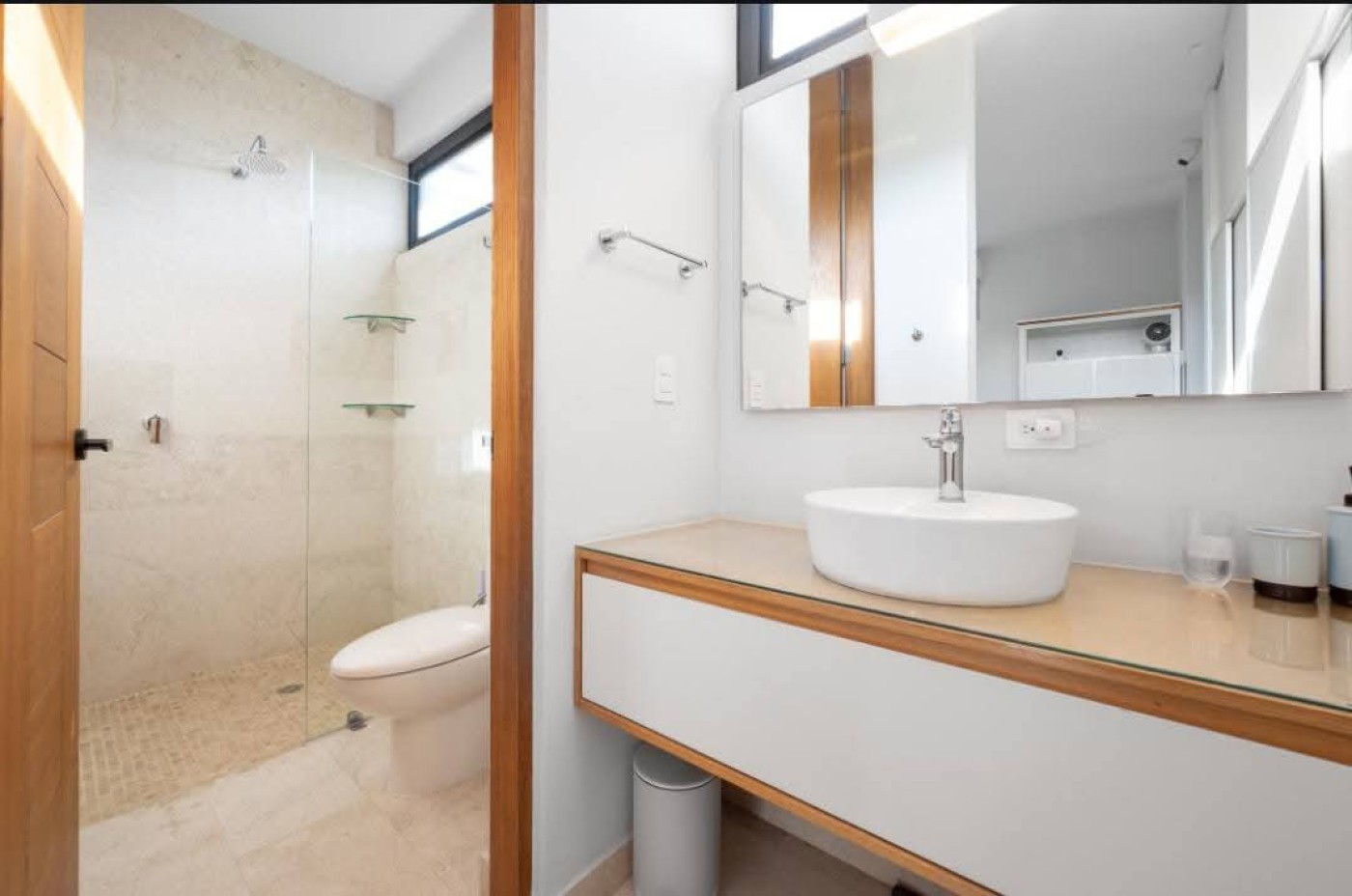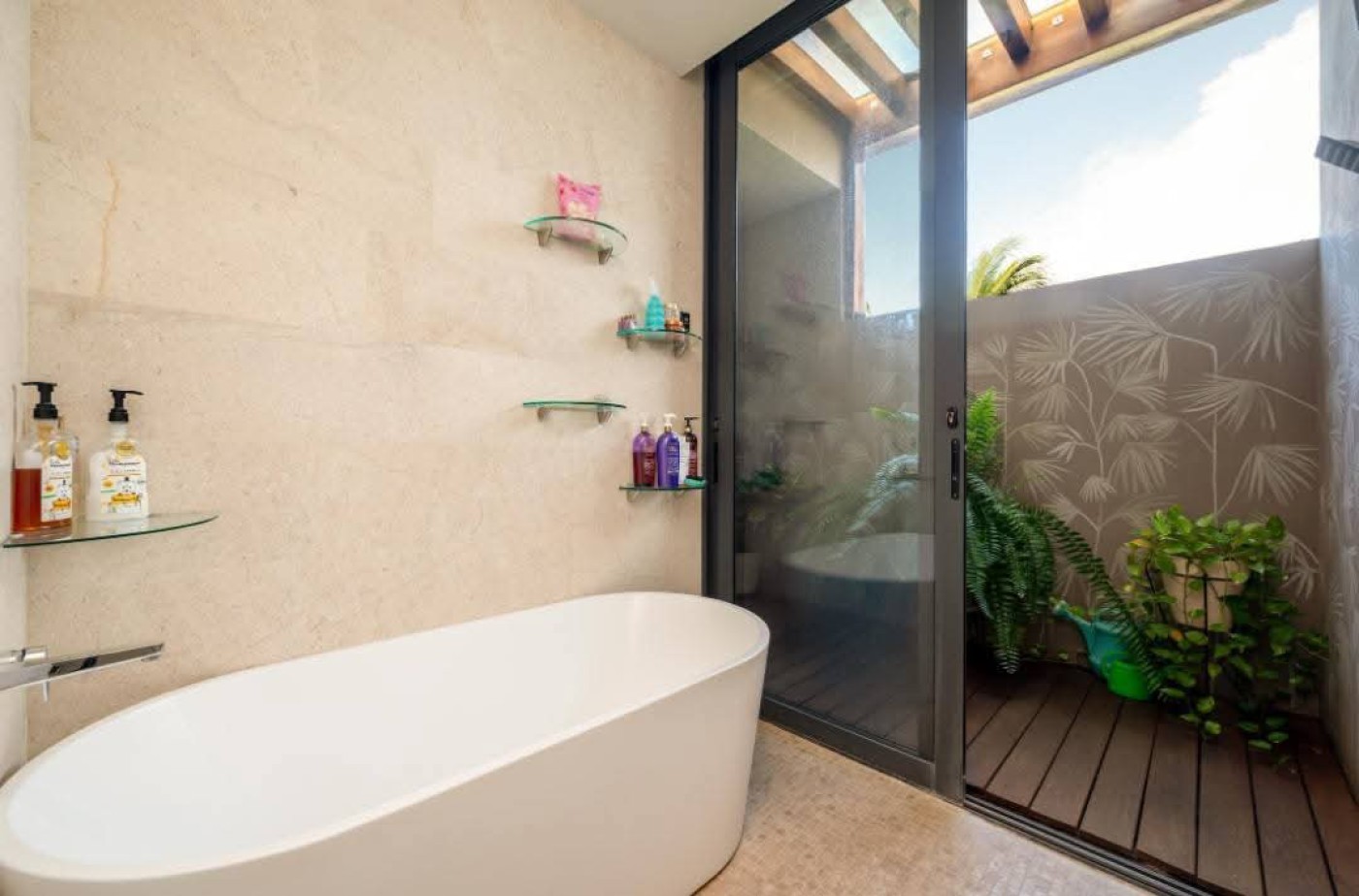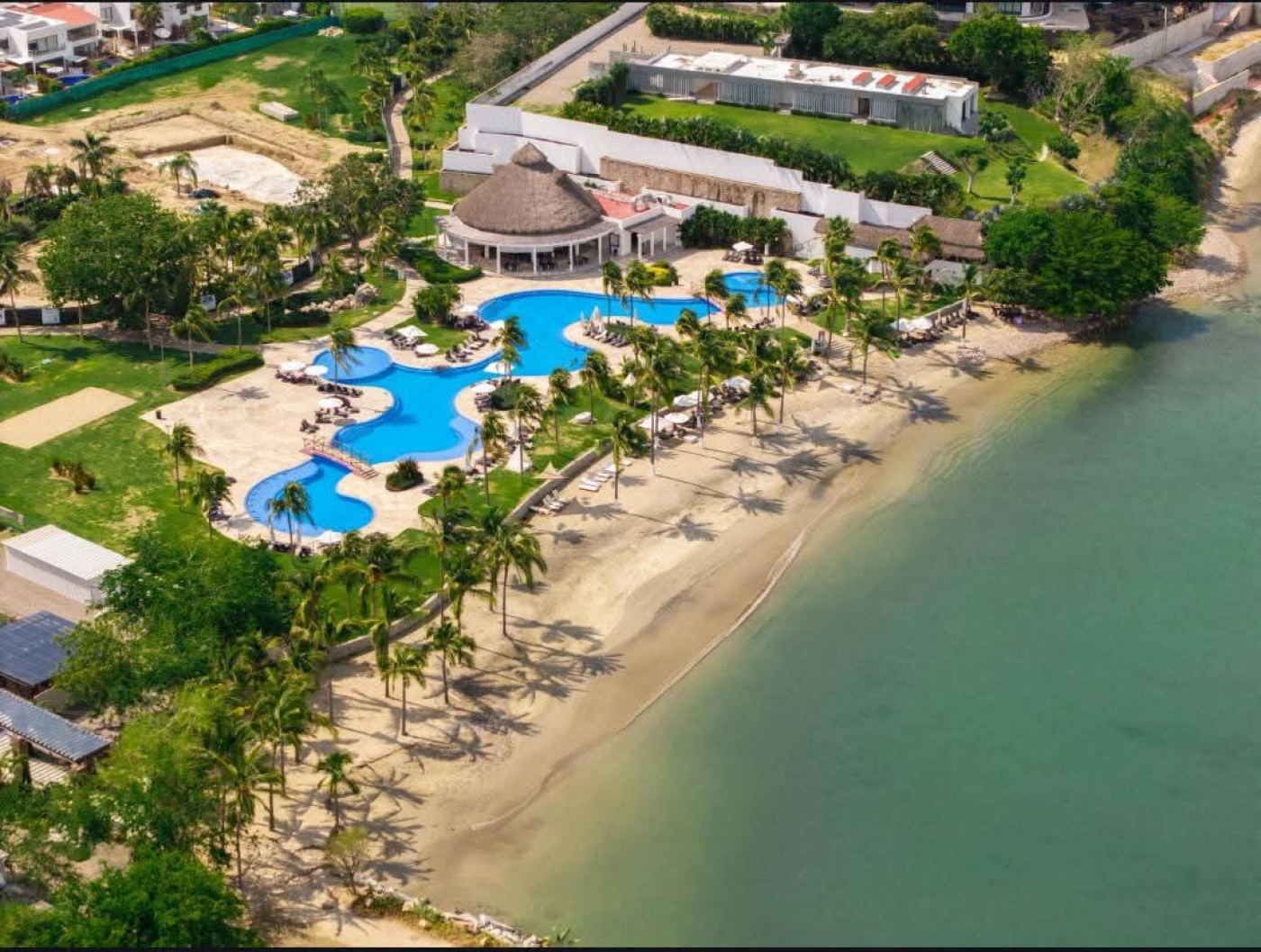Beautiful house for sale in La Cruz de Huanacaxtle with four bedrooms each featuring a private full bathroom. The fourth bedroom has a separate entrance, ideal for guests or staff. Enjoy a dedicated home office with sofa and rooftop workspace plus a den for relaxation and childs play. The rooftop pool includes jet and light therapy. Outdoor seating offers a fan, dining table and retractable shades, while two sunbeds and a giant umbrella provide extra lounging space. An additional shower and toilet add convenience. This quiet three-story home sits at the highest point in the complex, offering 360-degree views of the ocean, jungle and sunset. It overlooks a green palm park, providing privacy and a safe play area for children. The secure and peaceful environment includes amenities such as free kayaks, tennis and basketball courts, two pools with designated baby pools and splash pads, and an on-site restaurant. Price: $800,000 USD.