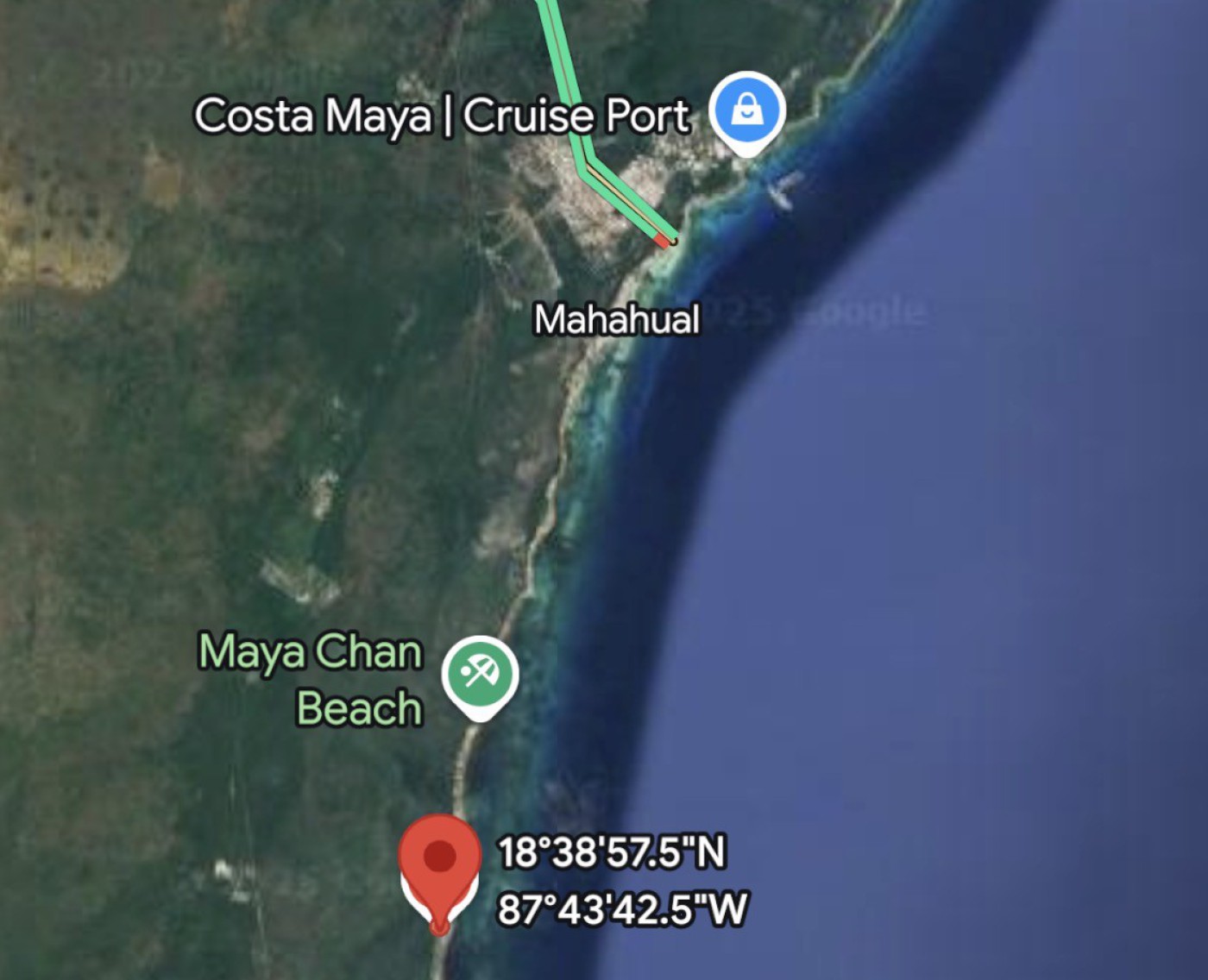Comment: FOR SALE - Two continuous plots of land in front of the sea. Excellent investment opportunity. Land 1: Seafront 20 meters; Total surface 2,378 m2; Front to dirt road 20 meters; Public deeds; Price $5,000,000 MXN. Land 2: Seafront 20 meters; Total surface 2,252,779 m2; Front to road 20 meters; Public deeds; Price $5,000,000 MXN. Both plots are adjacent; ideal for residential, tourist or long-term investment development. Privileged location facing the sea 26 minutes from Mahahual.
