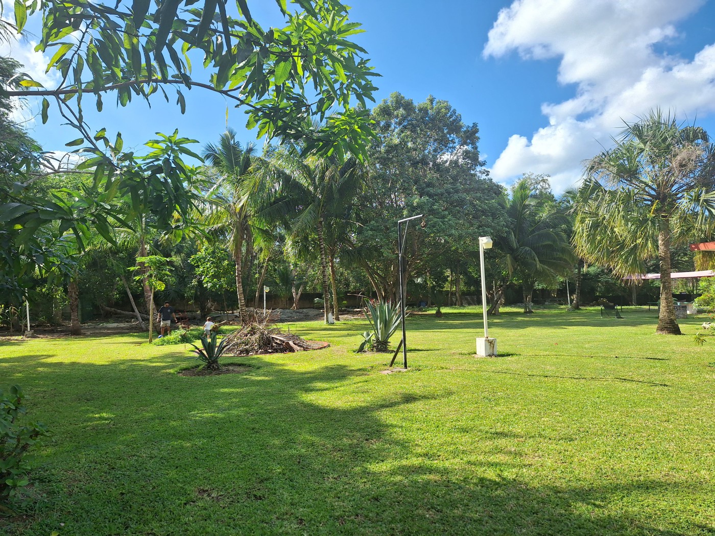 Comment: For Sale: 3-bedroom house in Cancun. Priced at MXN 55,000,000. Over 200 sq m of built area and 10,000 sq m of beautiful tropical gardens. Features include a swimming pool, bathroom block, pizza oven, large fish pond, medium turtle pond, basketball court, fruit orchard, woodland at the rear, cricket pitch, table tennis table, and volleyball court. Located 30 minutes from Cancun International Airport via a private road and 25 minutes to Cancun City in a tranquil green space. The property is in great condition with a new waterproofed roof on all buildings (2026) and rare, beautifully maintained grass throughout. There is a cenote under the football pitch that provides its own water supply.