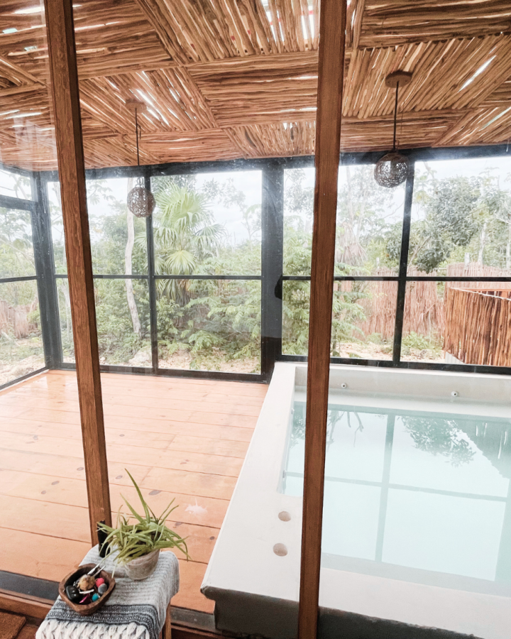 Comment: Off-Grid 2BR Jungle Cabin with Pool - 5 Mins to Tulum Centro - $115K USD. Looking for peace, private sanctuary, and deeper connection to nature? This handcrafted cabin sits on lush jungle land just 5 minutes from Tulum Centro, ideal for anyone ready to unplug from the noise and live in harmony with the earth. Features: 2 bedrooms, 2 bathrooms, modern fully furnished interior, separate lock-off suite for flexible rental options, two expansive decks (one with private plunge pool), private parking, high speed fiber optic internet, alarm system, security cameras, three mini split AC units, in-unit laundry, upgraded pool pump, new landscaping. Fully furnished with queen bed and mattress, bedside tables, sofa bed, coffee table, bar stools, convection oven, curtains, rods and fixtures. No HOA, no property taxes. Land leased at $200 USD per month including water and maintenance; lease is renewable and secure. Cabin is mobile and part of a community of 12 cabin owners.