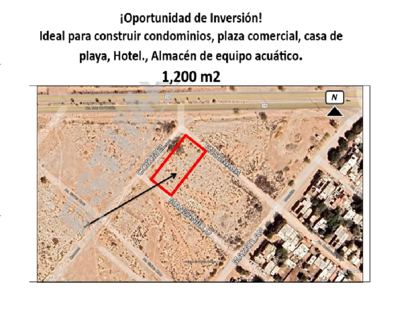 Property Overview: - Dimensions: 50 m x 24 m (1,200 sq m) - Prime coastal location in Bahia de Kino - Zoned for residential or commercial use - Asking price: USD 45,000 (negotiable)