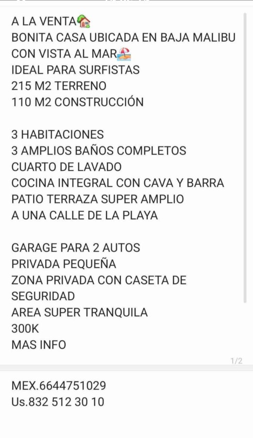 Experience coastal living just one block from the beach in this secure, tranquil Tijuana residence. This modern home features three bedrooms, three full bathrooms, and a two-car garage.