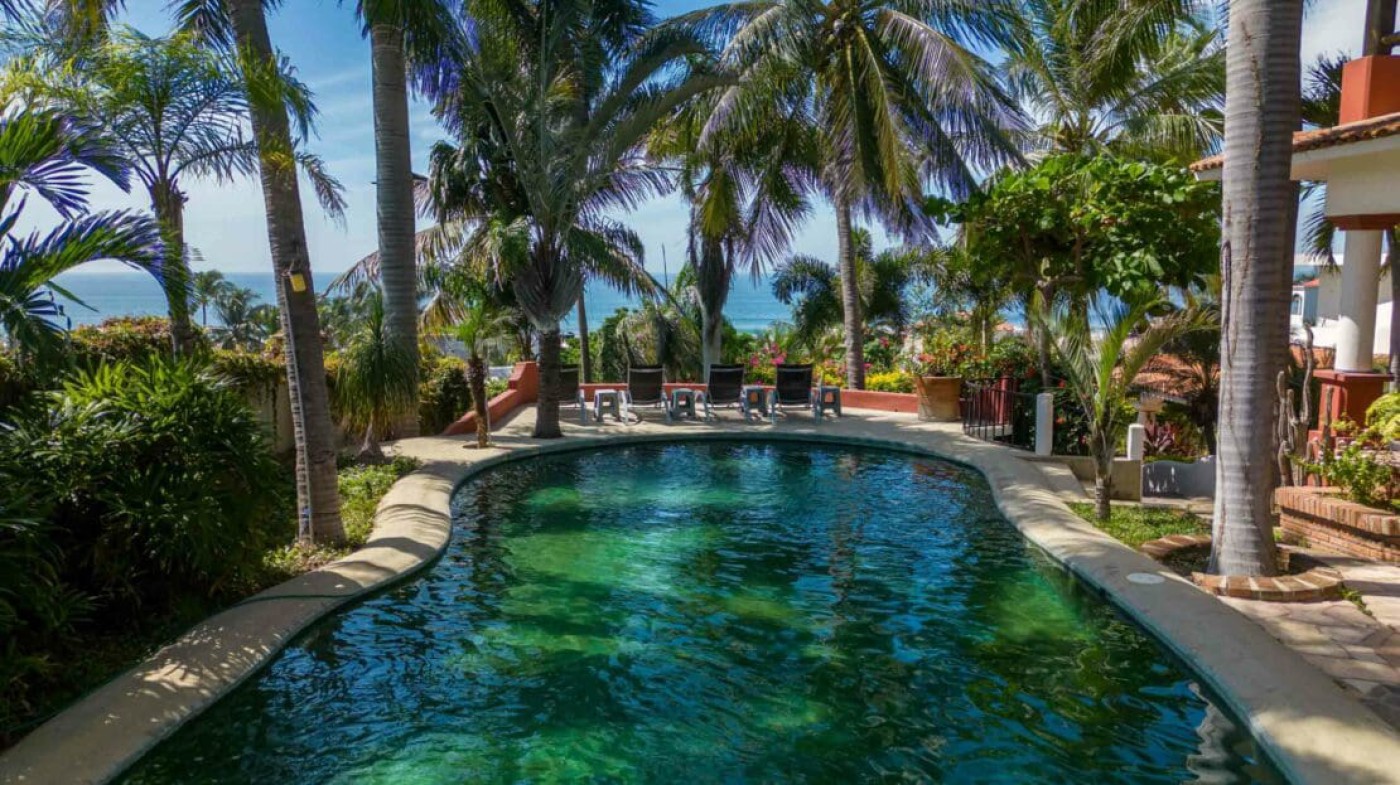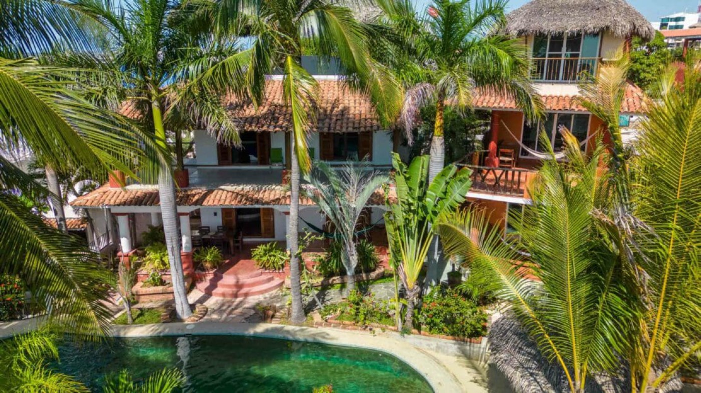 Key Features: - Three self-contained buildings (3 apartments, main residence, casita) - Rooftop palapa with Pacific views - Swimming pool and landscaped garden - Solar panels for sustainable energy