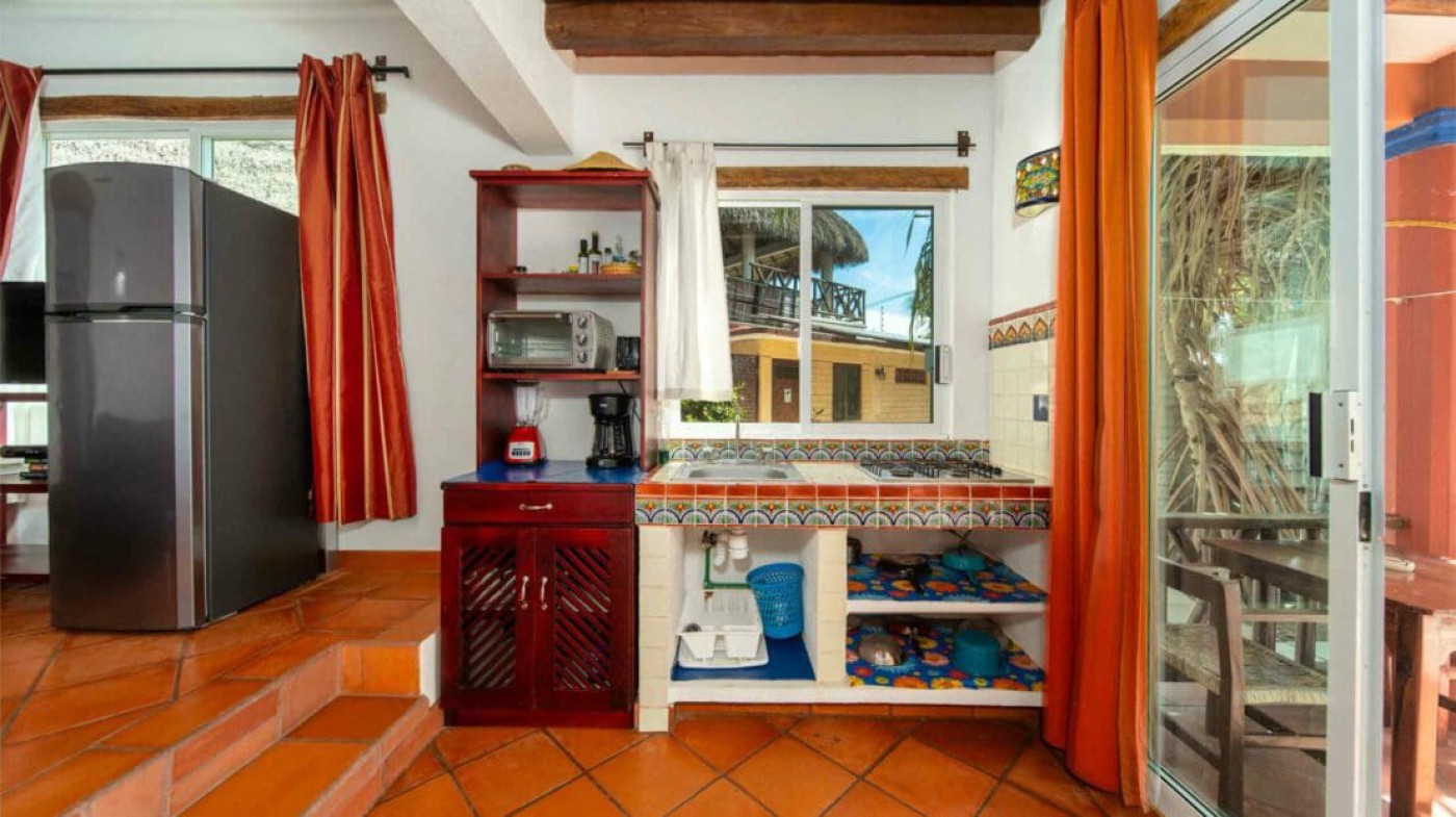 A three-building development in Puerto Escondido s Mercado Zicatela district offers six bedrooms across separate units, pool, garden, rooftop palapa, and solar panels.