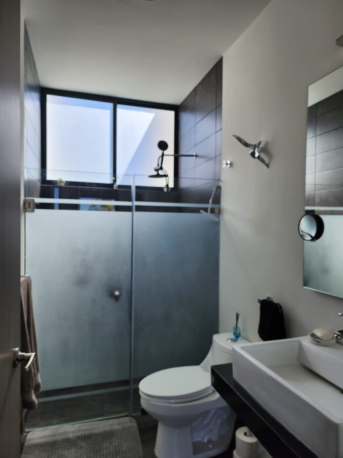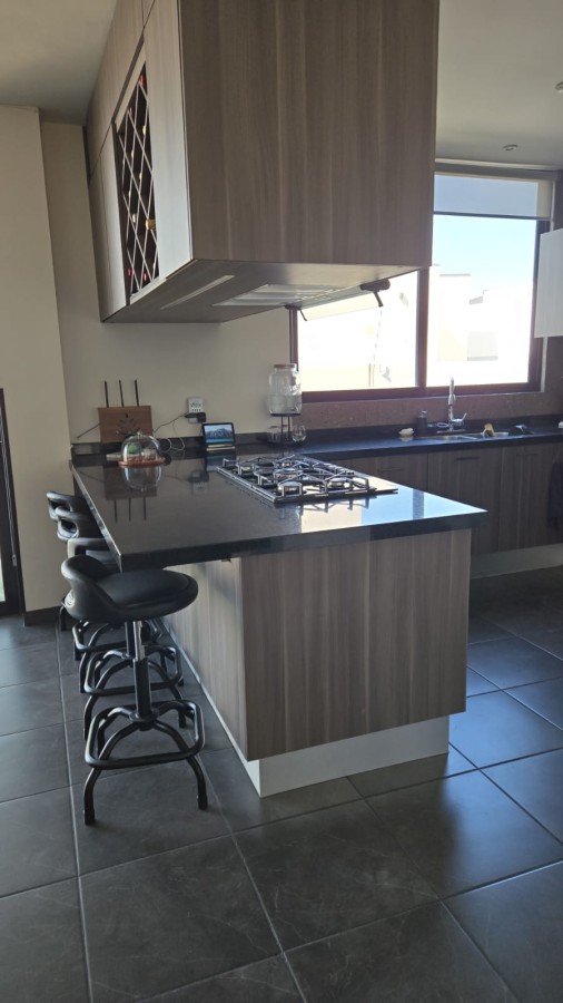 Residencia con vista al valle en Privada Turquesa, Zibata, Queretaro. Esta residencia de 300 m2 de construccion en 4 niveles ofrece amplitud, privacidad y diseno contemporaneo para disfrutar cada momento. Cuenta con roof garden con pergola de cristal templado, barra con tarja, medio bano, bodega y vista panoramica al valle; sotano social con area de reuniones, jardin privado, bano completo, cuarto de servicio y area de lavado; planta baja con concepto abierto de sala comedor, cocina equipada con barra de granito, estudio o recamara y medio bano; planta alta con master suite con vestidor y bano completo, dos recamaras secundarias y area de TV. Equipamiento: paneles solares, sistema de filtracion de agua de 5 etapas, cisterna con sistema presurizado, puerta de seguridad, gas natural, internet activo, antena expansora de senal, cochera techada para dos autos y persianas en todas las ventanas. Privada Turquesa ofrece vigilancia 24/7, gimnasio, coworking, salon de eventos y areas verdes en un entorno familiar. Precio 6950000 MXN.