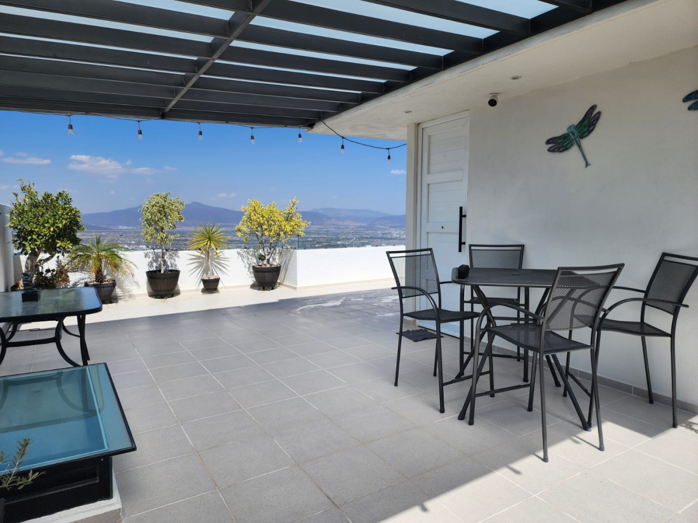 - Roof garden with tempered glass pergola and valley views