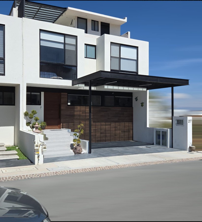 Discover a contemporary 4-level residence in Privada Turquesa, Zibata, offering panoramic valley views and energy-efficient living. This 3-bedroom, 3.5-bath home features a rooftop terrace, private basement garden, and modern amenities throughout.