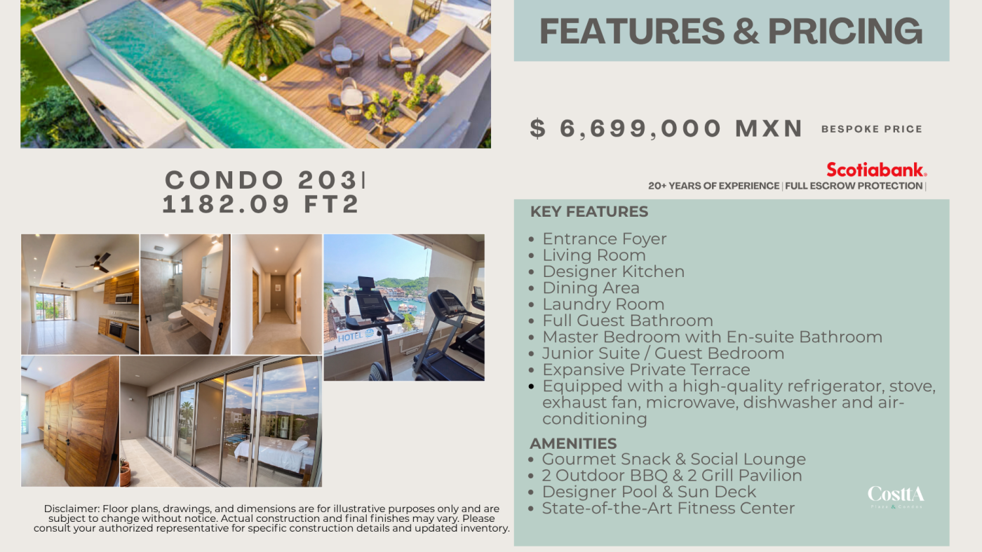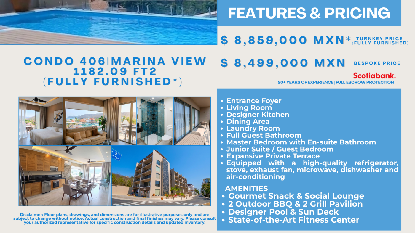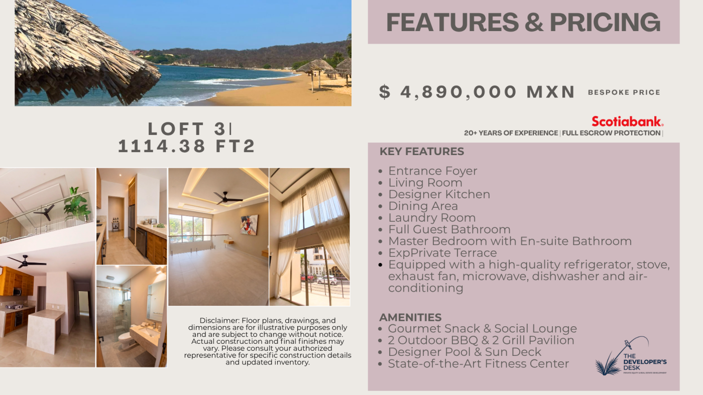 Residents enjoy two infinity pools, private beach access, pickleball courts, a golf practice area, an on-site restaurant, full-service spa, dedicated BBQ area, private parking, and 24/7 security. The property is fully completed with immediate possession available. All transactions are handled through a Scotiabank bank trust (fideicomiso) and notary-verified for legal certainty and full escrow protection.