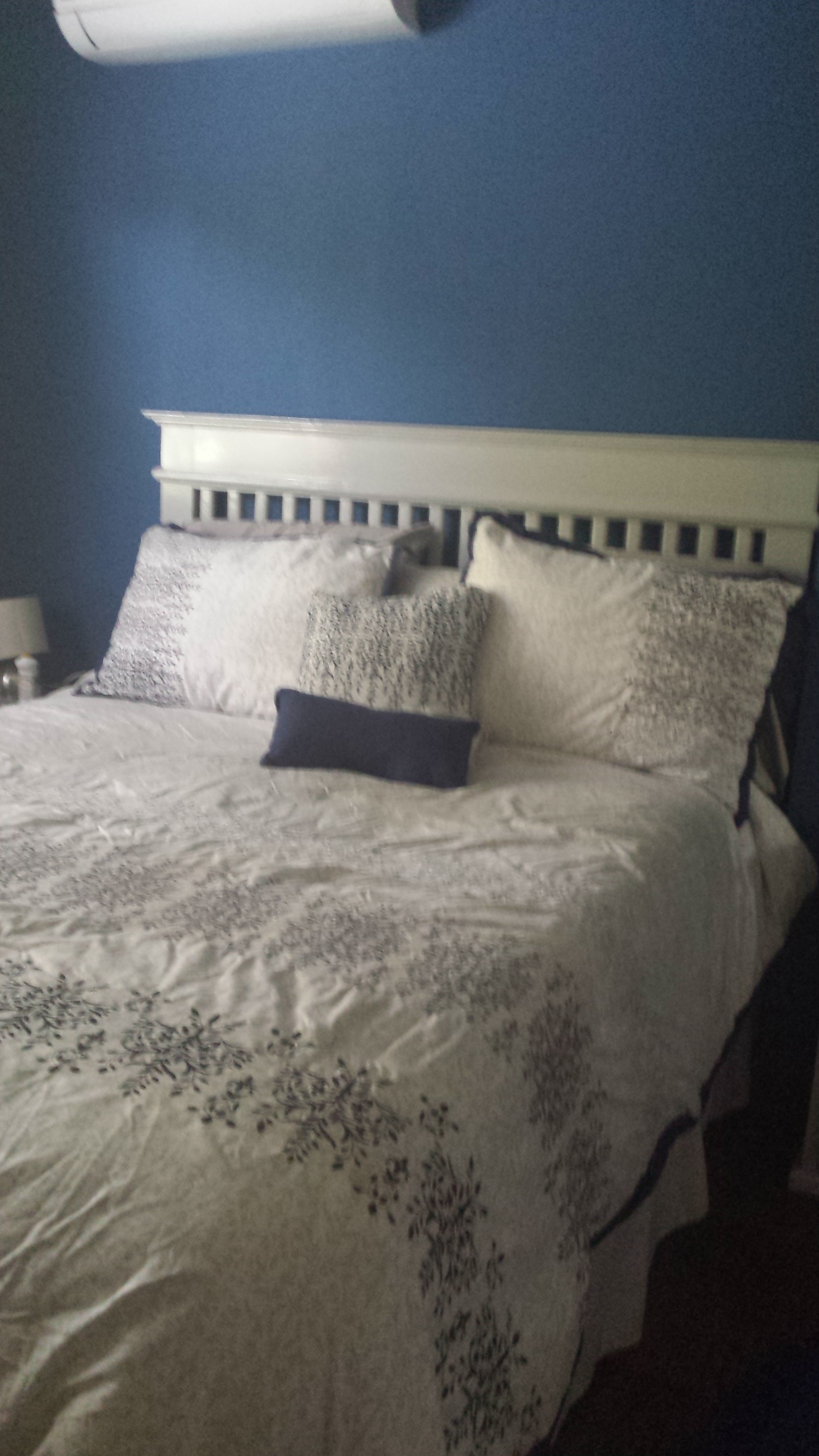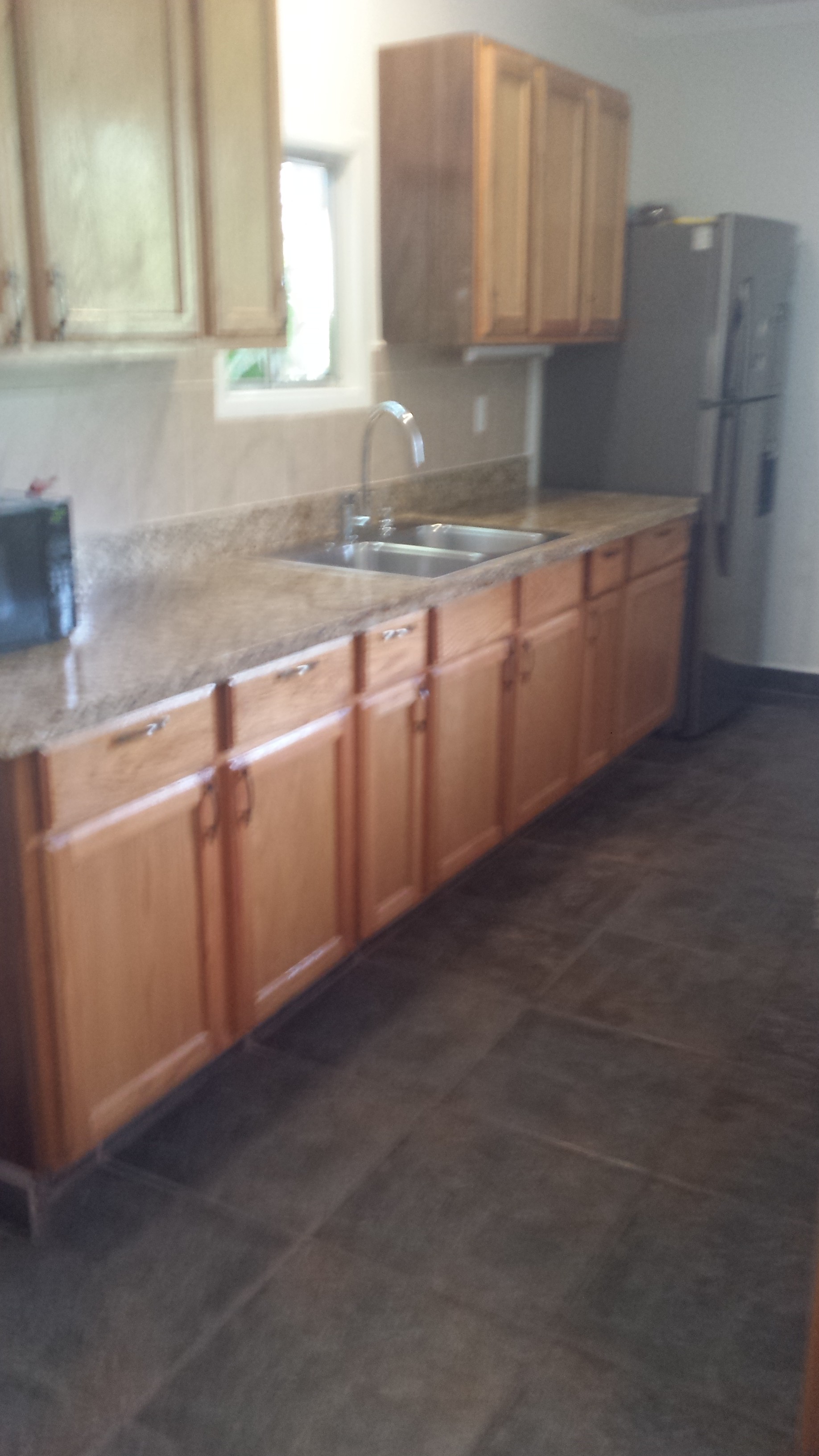 two bathrooms ( one is ensuite), galley kitchen with granite counter tops, and a open living room