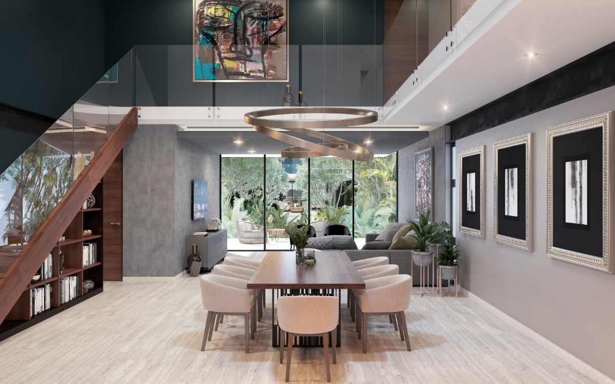 - Double height dining room