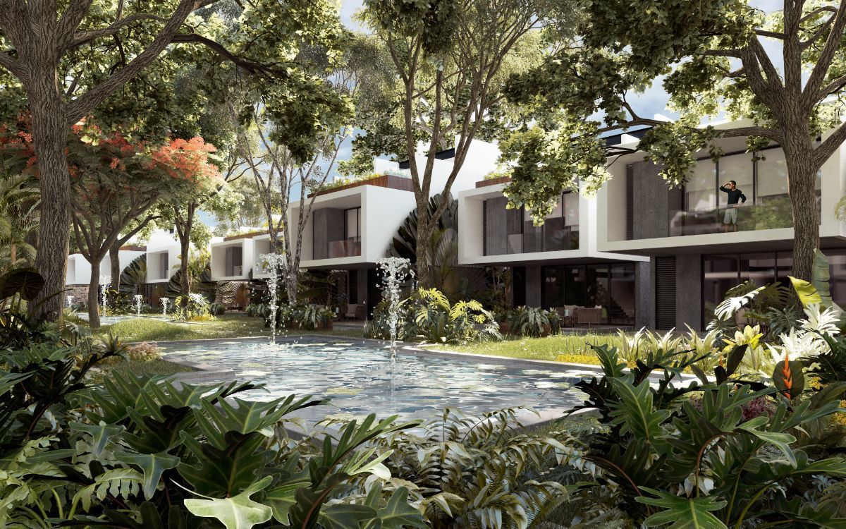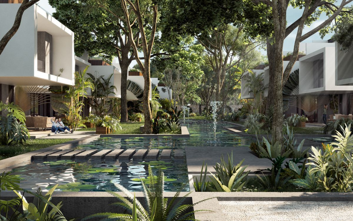 Roofed terraces overlooking swimming pools