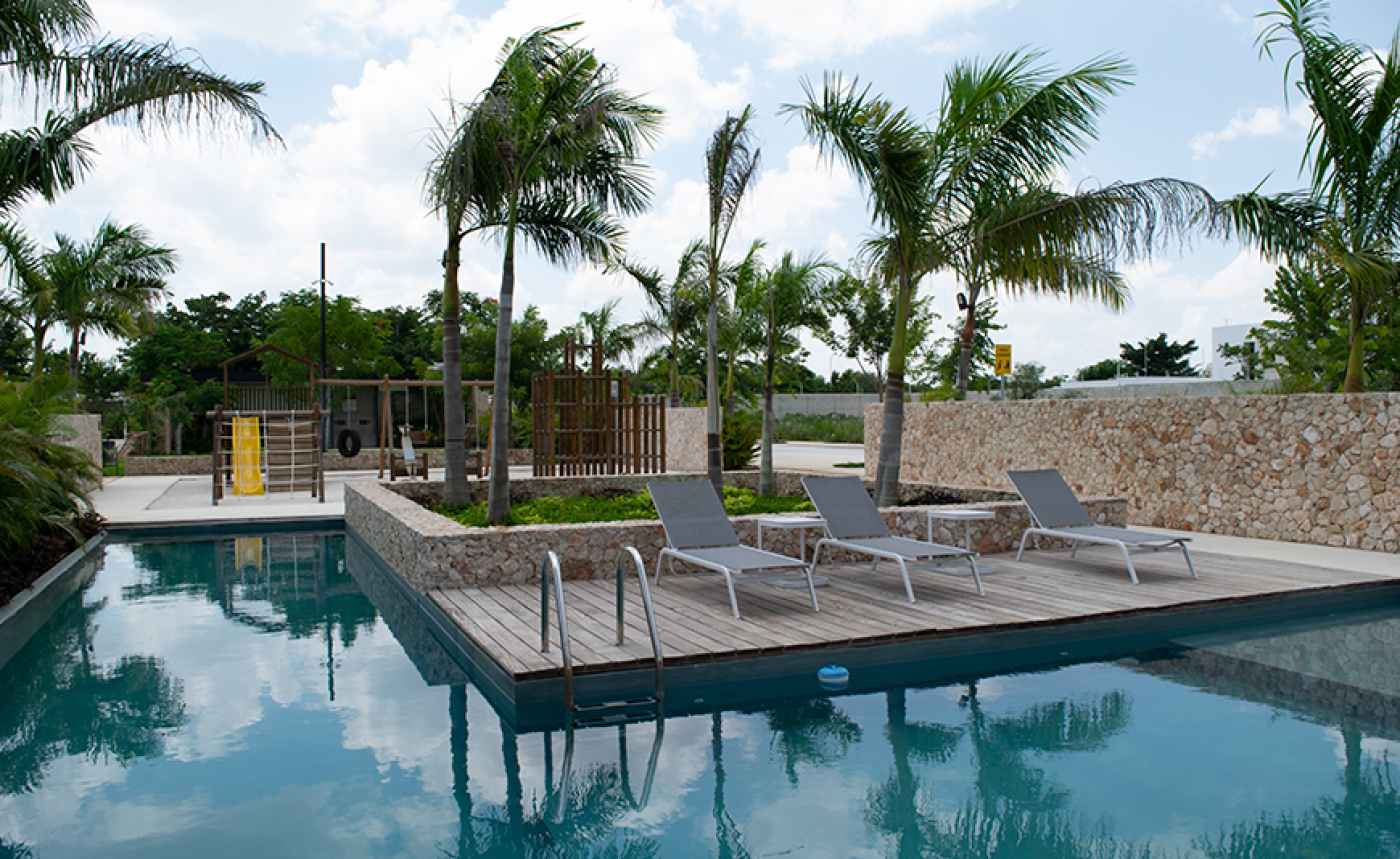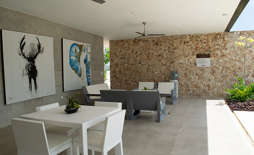 Social area with living room, dining room and bar overlooking the paddle court, equipped with air