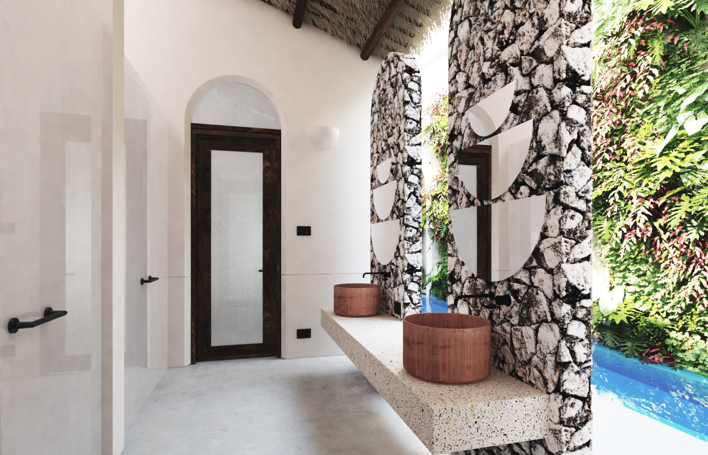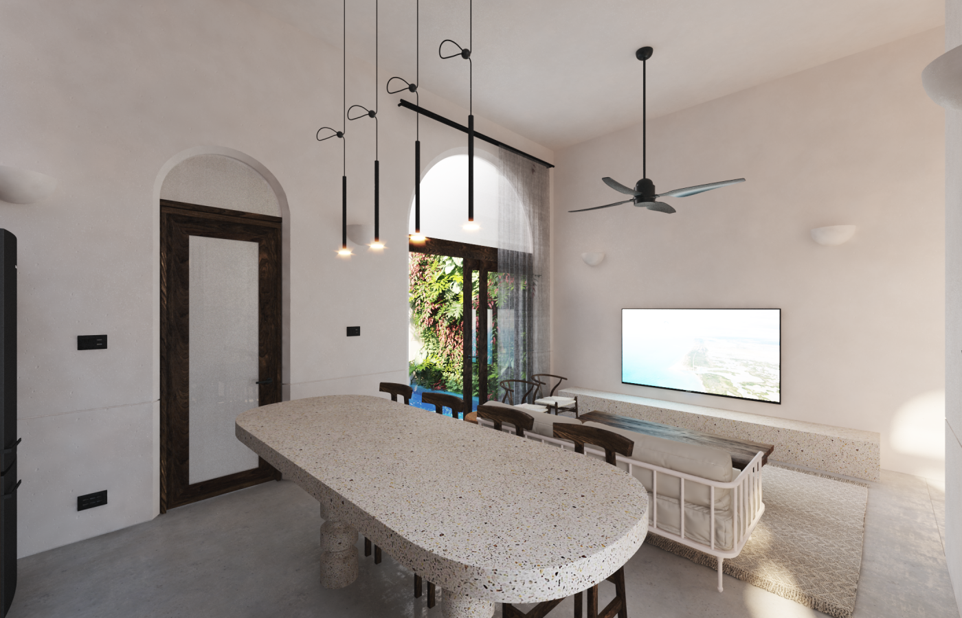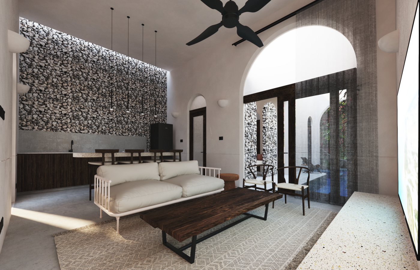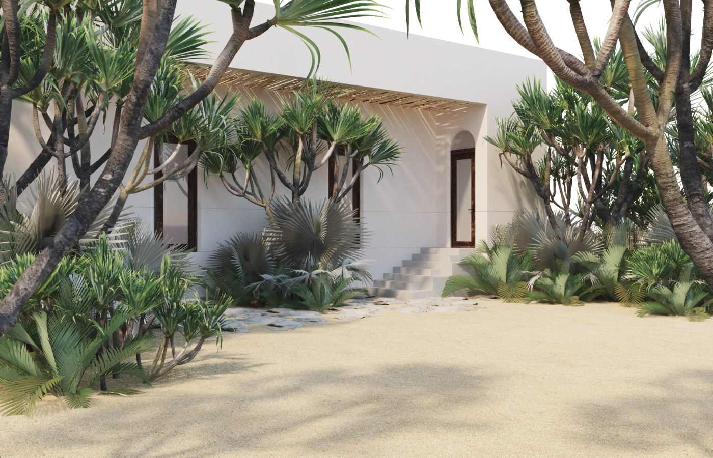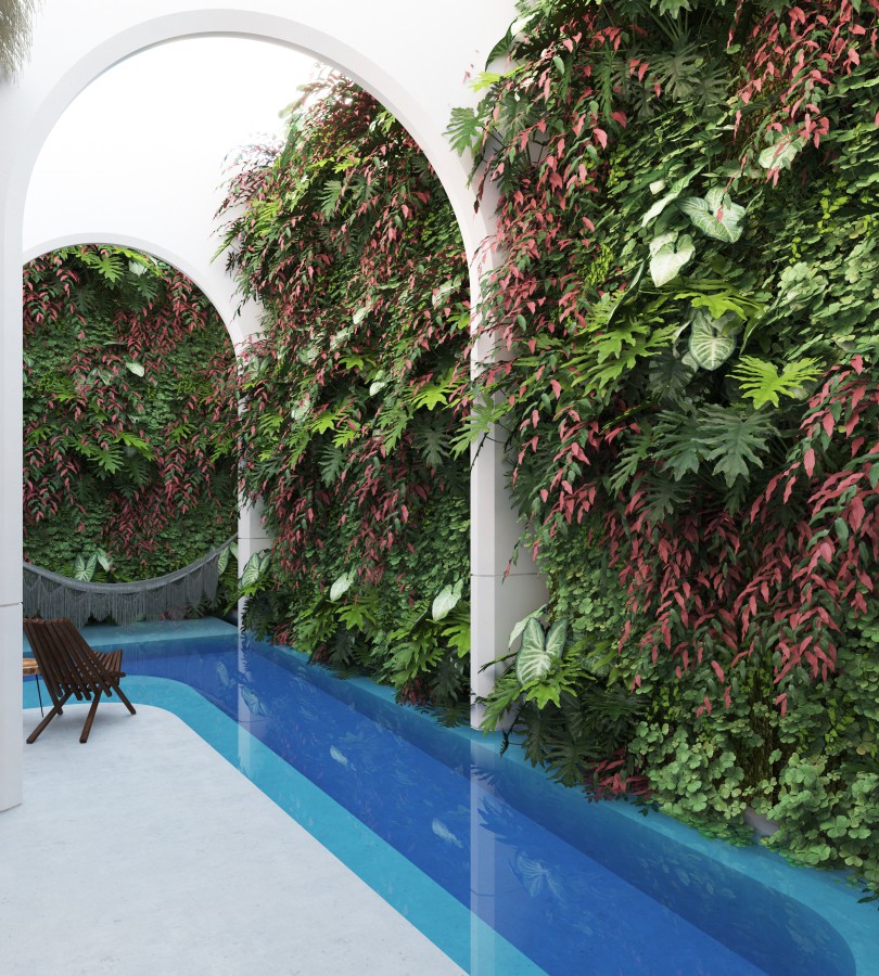 The house include parking lot for 2, Mayan masonry foundations on sand to level up over historic flood data (conagua y otras fuentes), starcaise from parking level to front terrance level. access to the house by the living room on a wide area with the kitchen and dining space, 1 bedroom with closet and 1 bath room; 1 pool with filter system to recycle the water for years and with ligths under the water. Aditionals: Premium funiture pack (on demand).