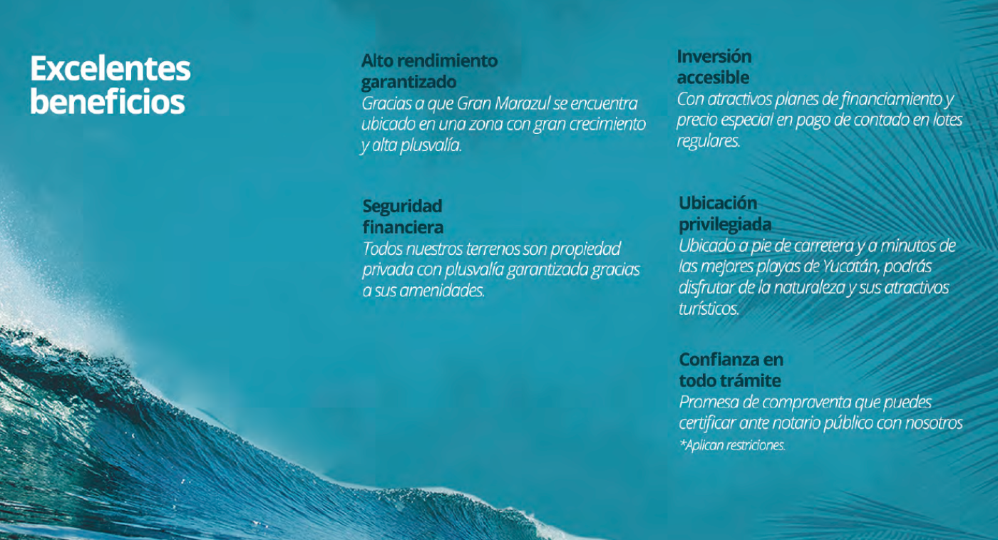 Experience the perfect blend of natural beauty and modern convenience at Gran Marazul, an exceptional investment opportunity located on the breathtaking Yucatecan coast. Strategically situated at the foot of the highway that connects Dzidzantun to Santa Clara, this development is just a 3-minute drive from the beach and adjacent to the highly successful Marazul project, which has already sold over 2,600 lots.