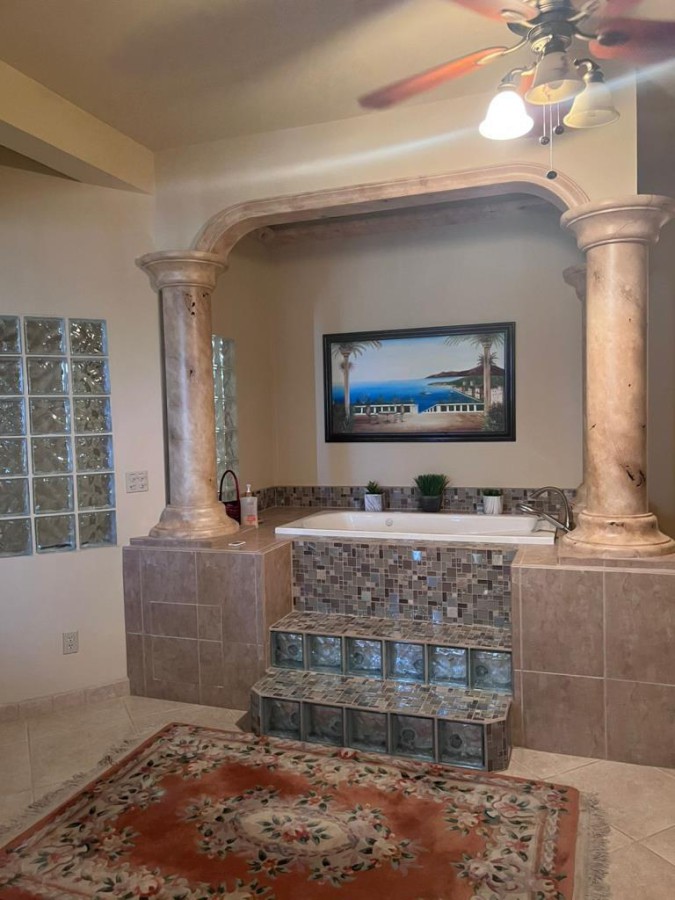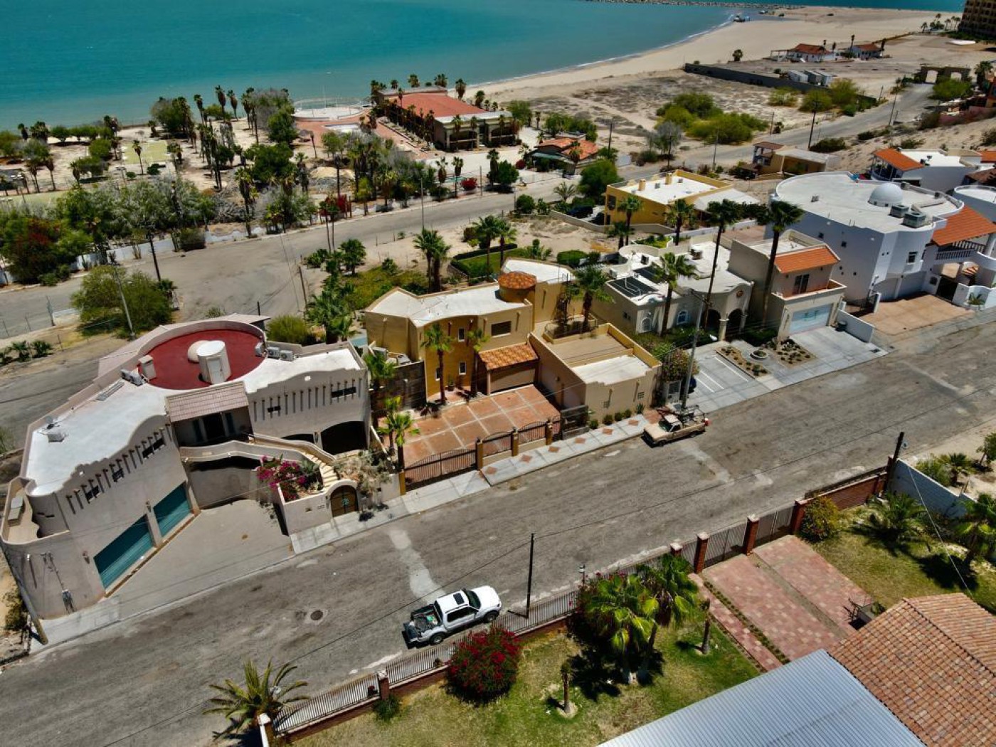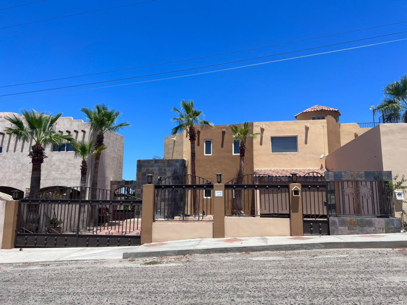VACATION/FAMILY HOUSE, WITH APARTMENT AND ADJACENT LOT 5 terraces, five rooms (four bedrooms and one office) four bathrooms, Master bedroom with private bath, soaking tub, walk in closet, walk in closet spacious kitchen and living room the upper floor has full living room, complete ground floor apartment (bathroom, bedroom, kitchen, living room). front yard and back yard it has an area for a bonfire, palapa, outdoor shuffleboard, mini storage on first floor, alarm system, security cameras, central air conditioning units, one upstairs, one downstairs 3700 sq ft home the home is on 836 sq mts. lot and the adjacent lot is 720 sq. mts.